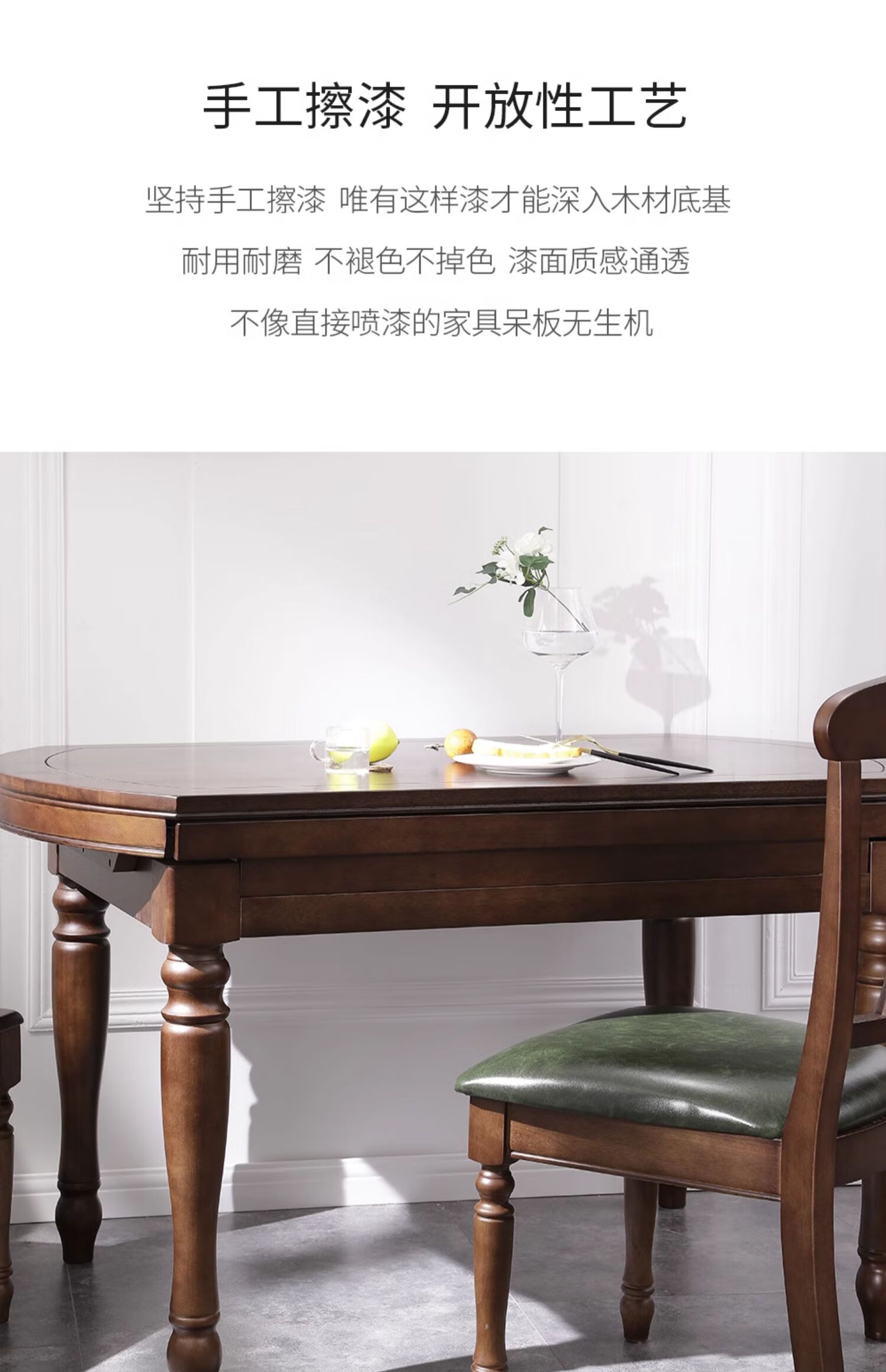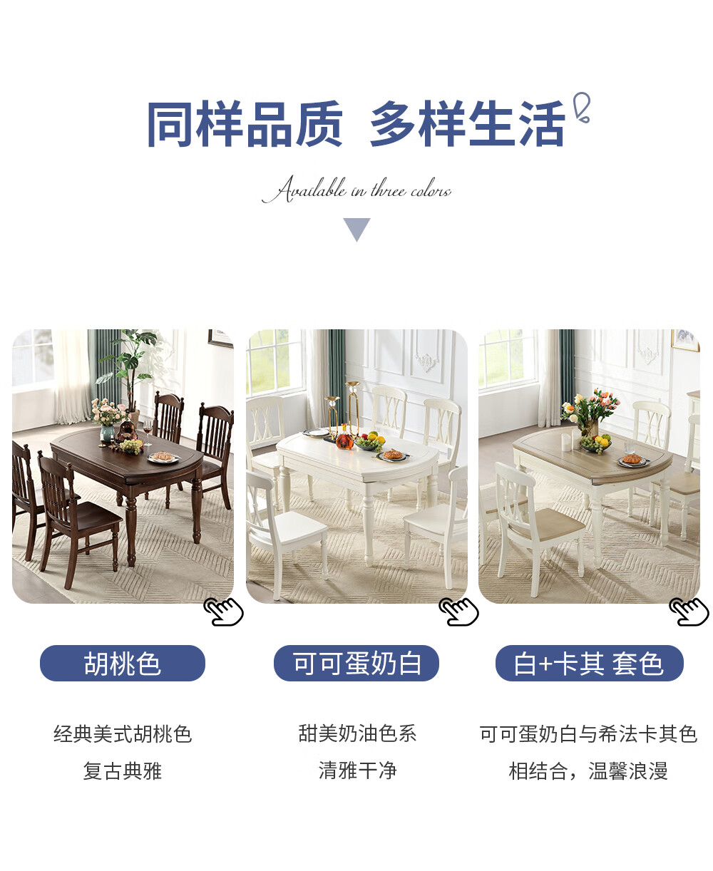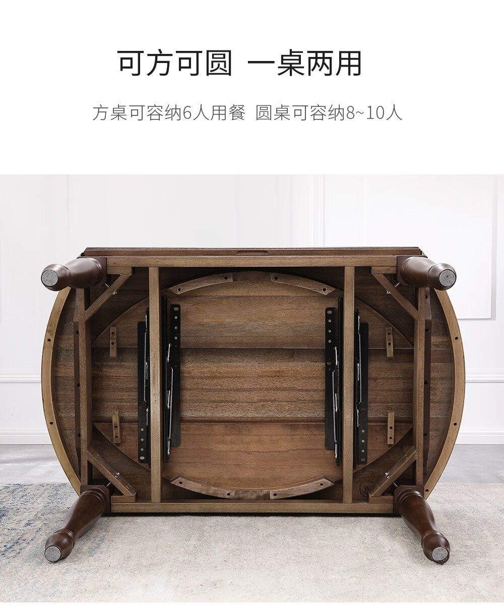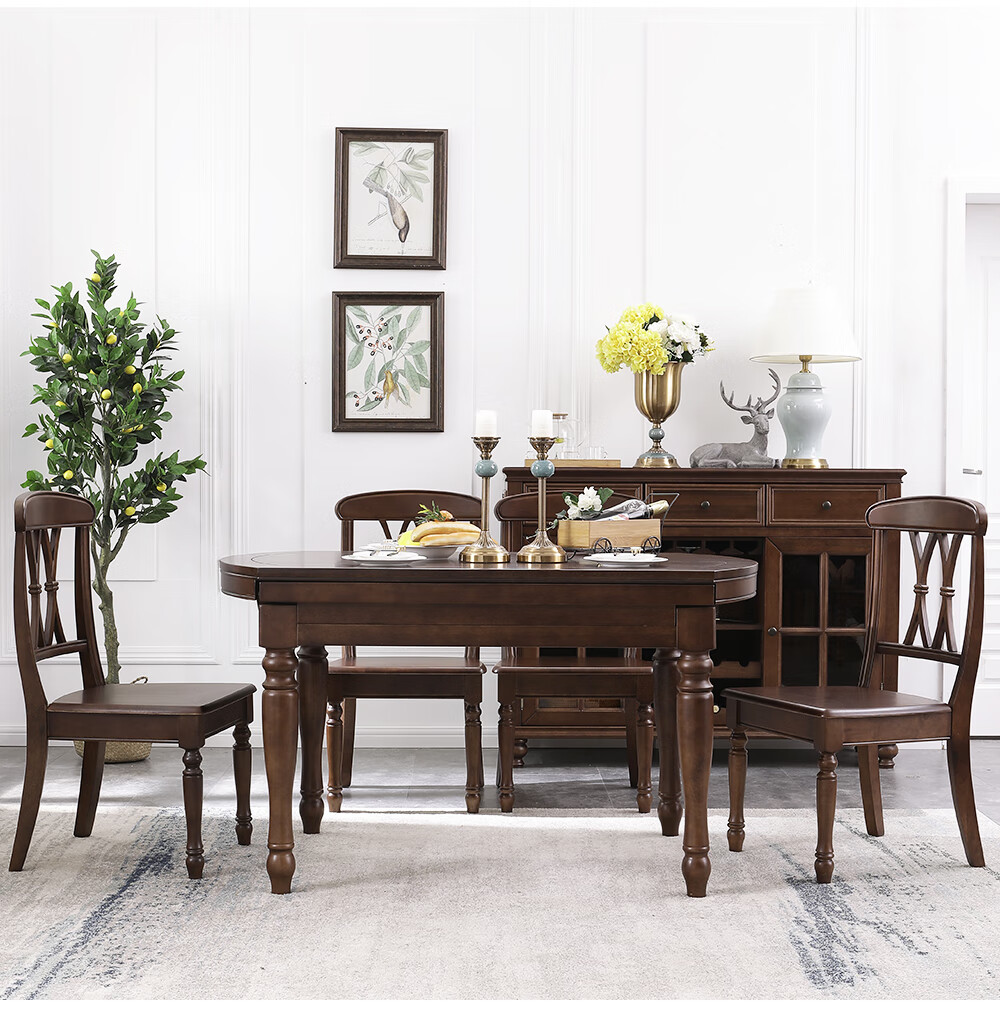 One American country all solid wood dining table retractable folding table small American retro restaurant home dining table one table four hard chairs solid wood guide rail 1.35M