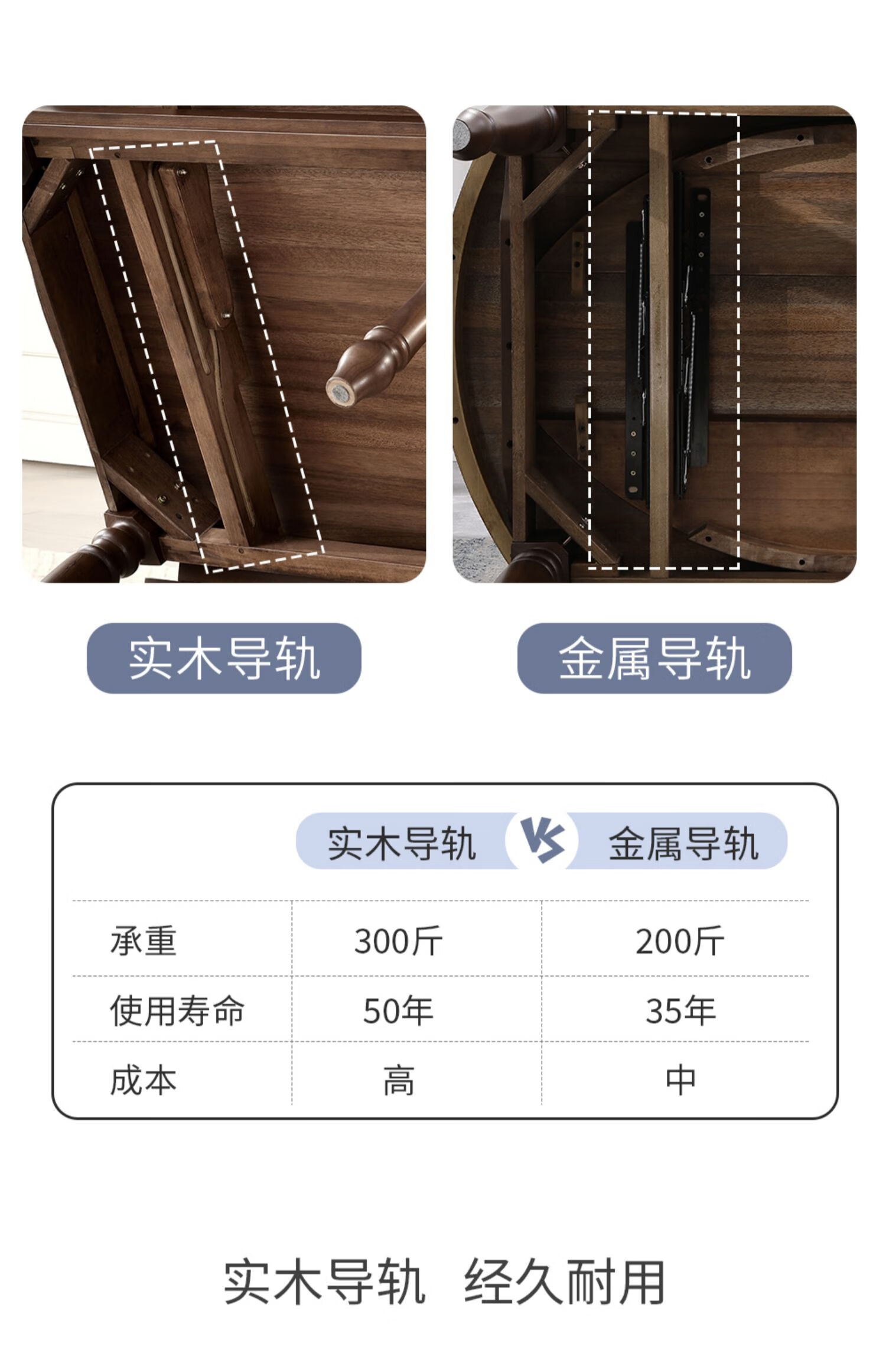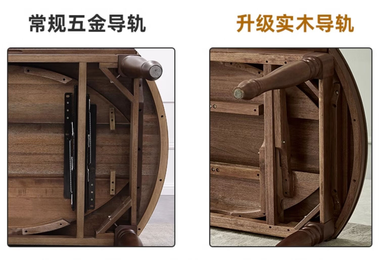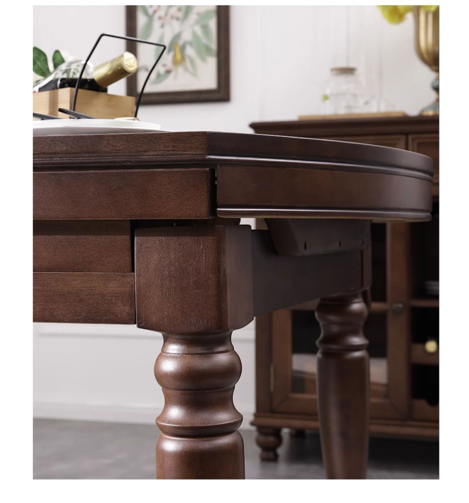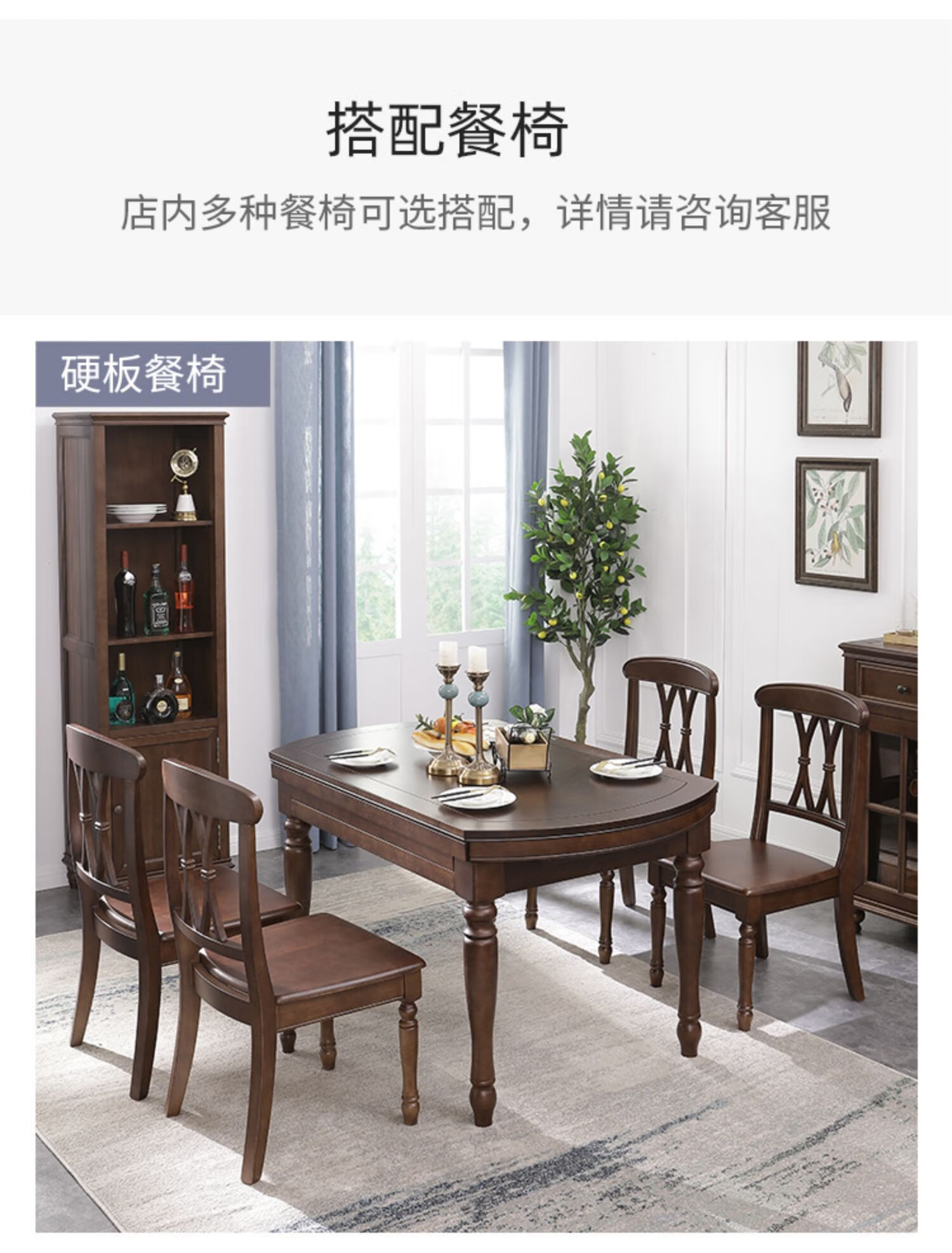 One American country all solid wood dining table retractable folding table small American retro restaurant home dining table one table four hard chairs solid wood guide rail 1.35M