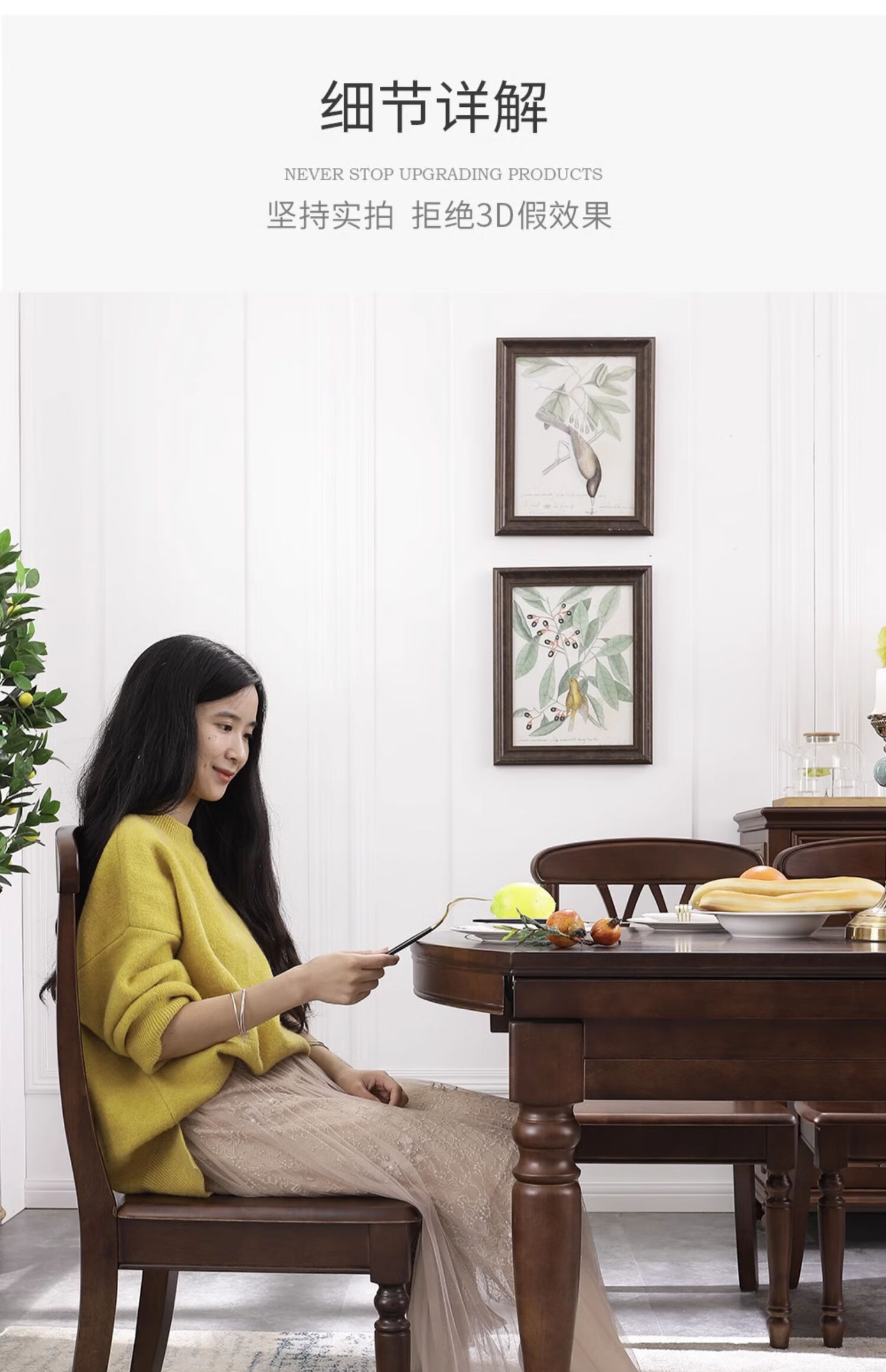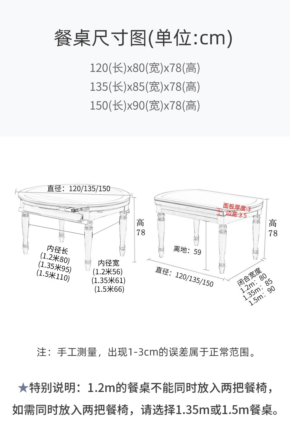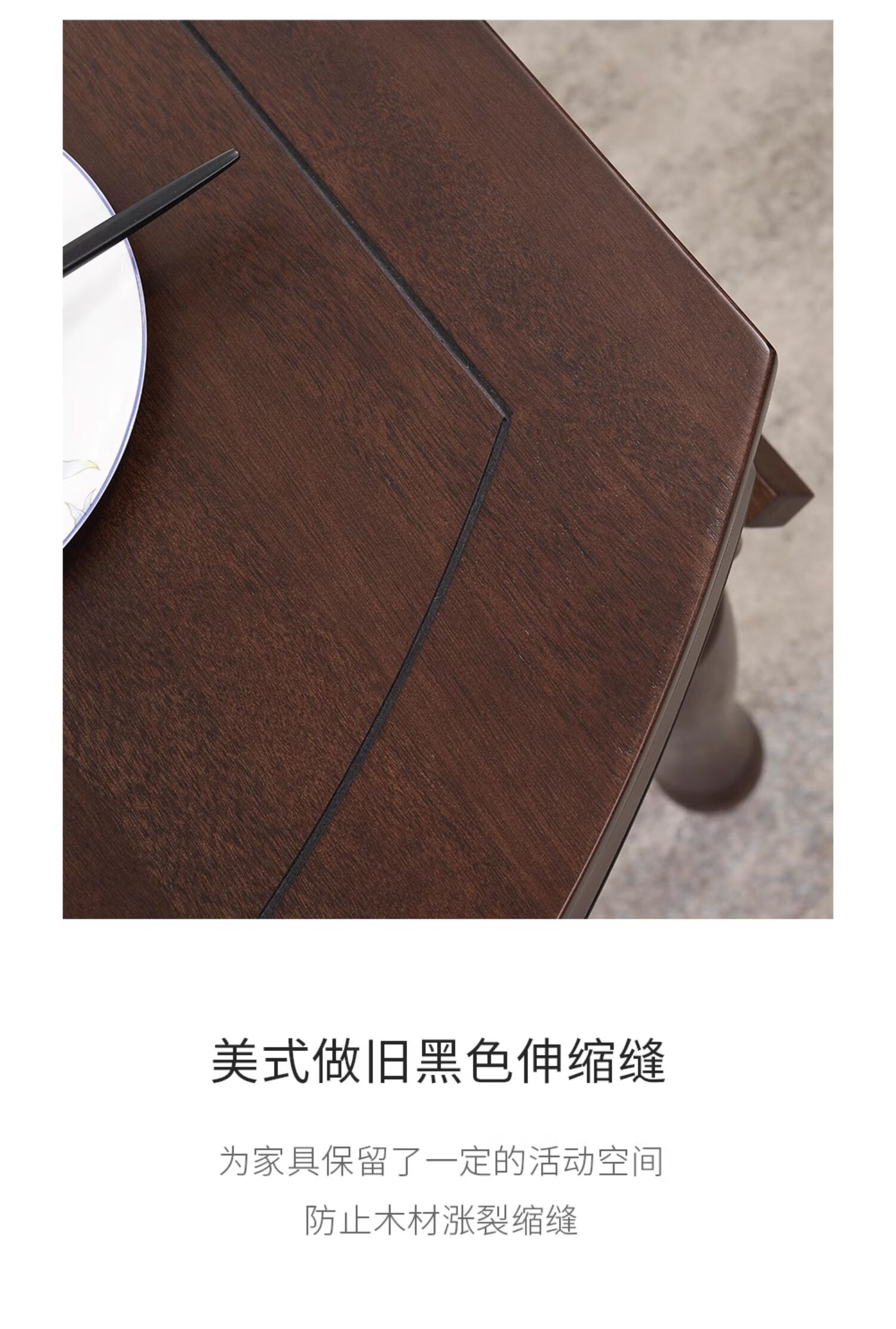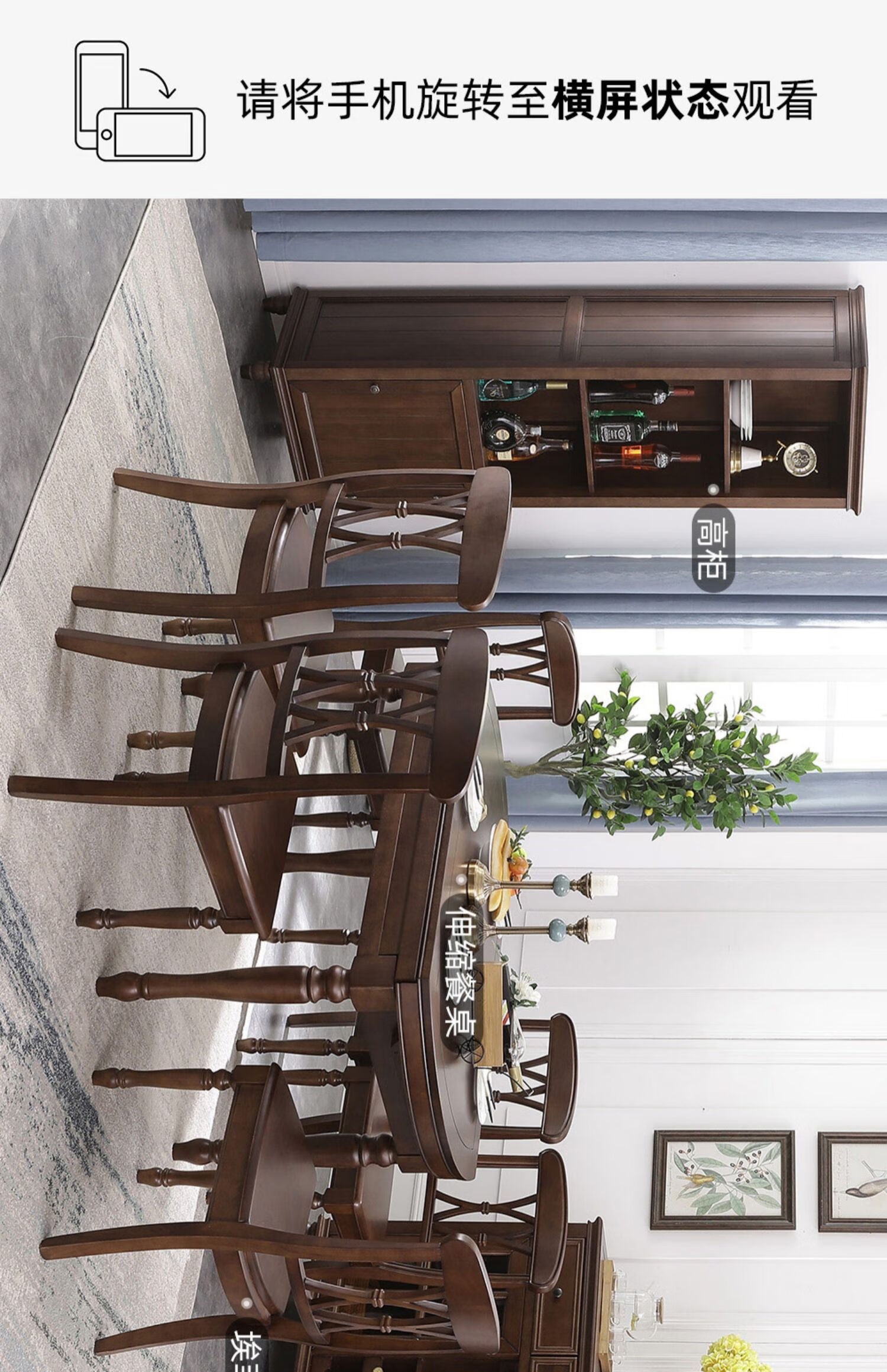 One American country all solid wood dining table retractable folding table small American retro restaurant home dining table one table four hard chairs solid wood guide rail 1.35M
