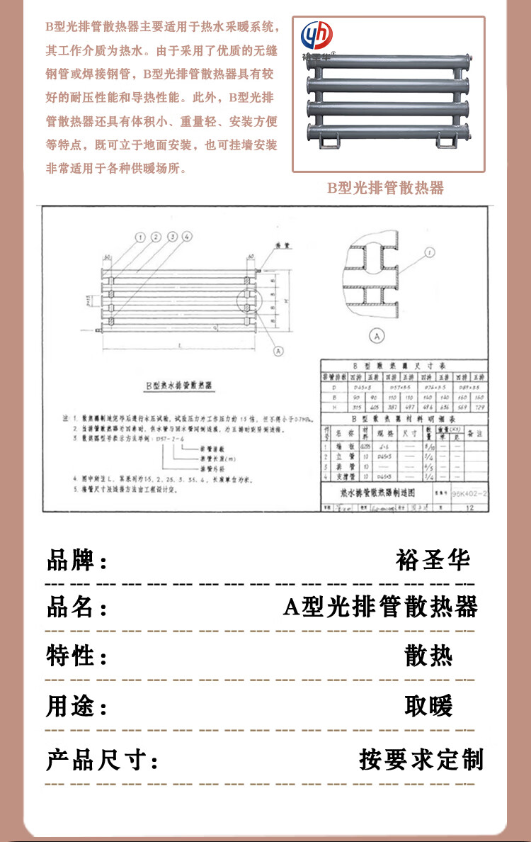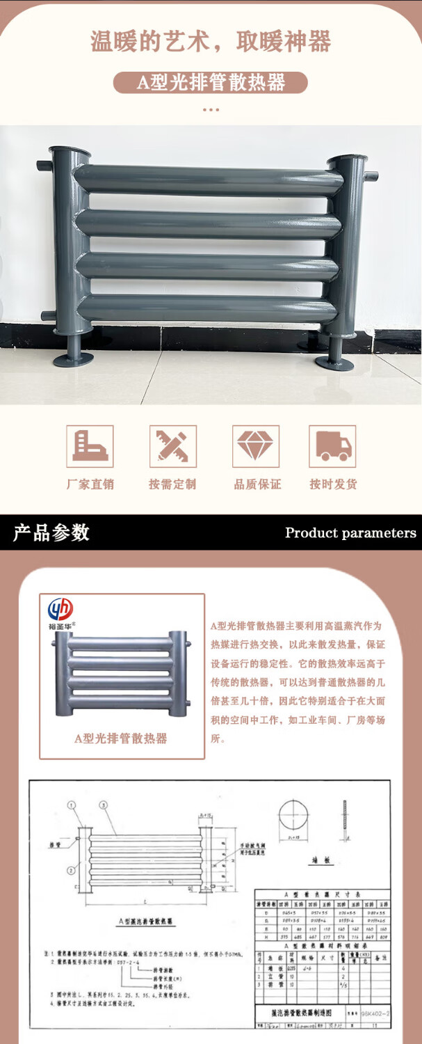 Yushenghua A-type steam light exhaust pipe radiator for heating chicken coop. Industrial large-diameter steel smooth tube radiator. Can be customized by calling us. 600mm*550mm.