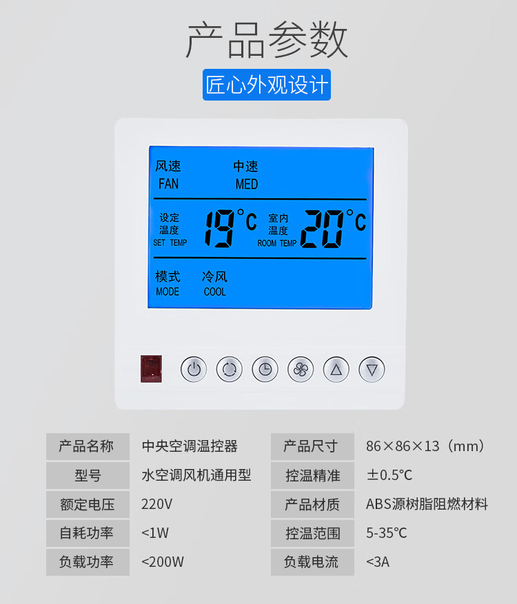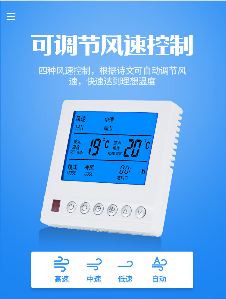 Thermostat air conditioning control panel fan coil temperature control switch MCQUAY AC81 AC8100 green label