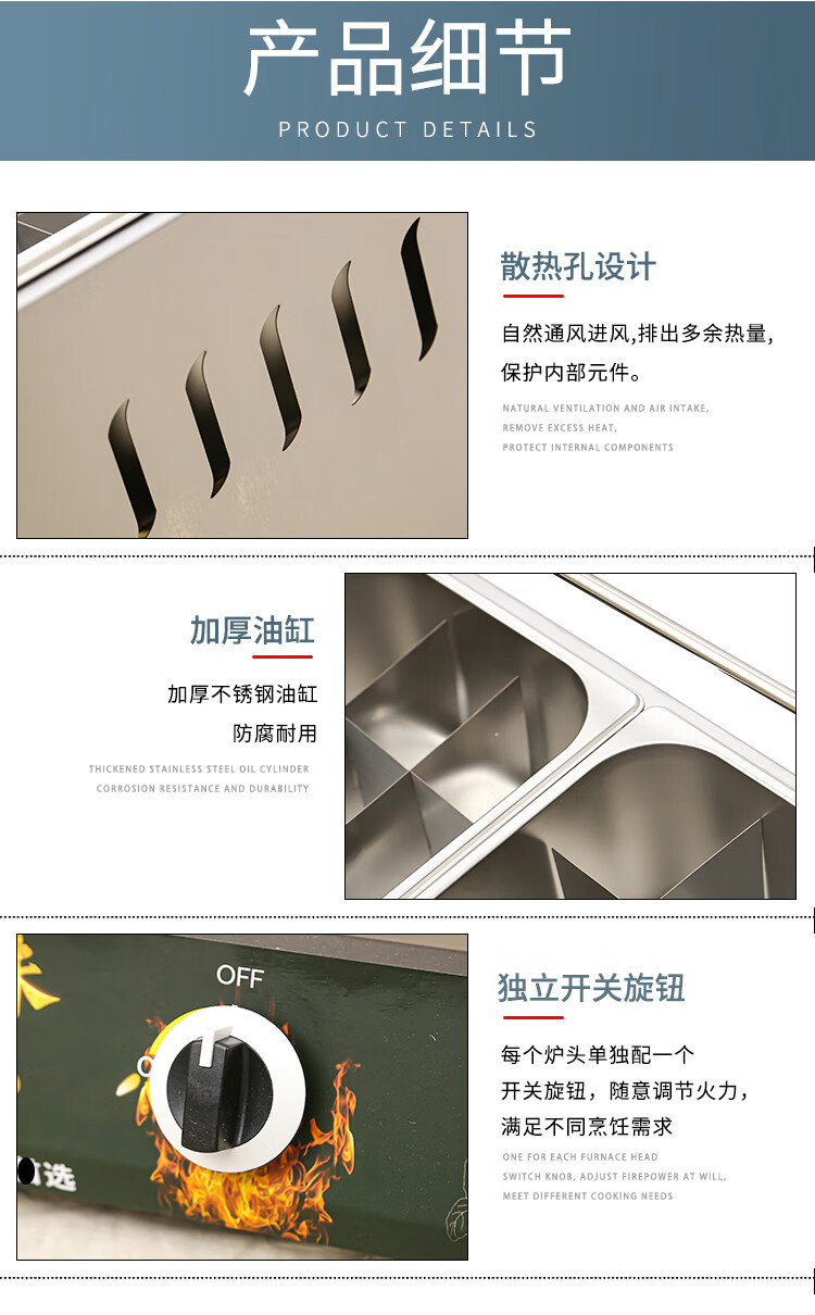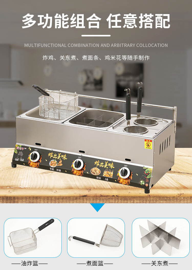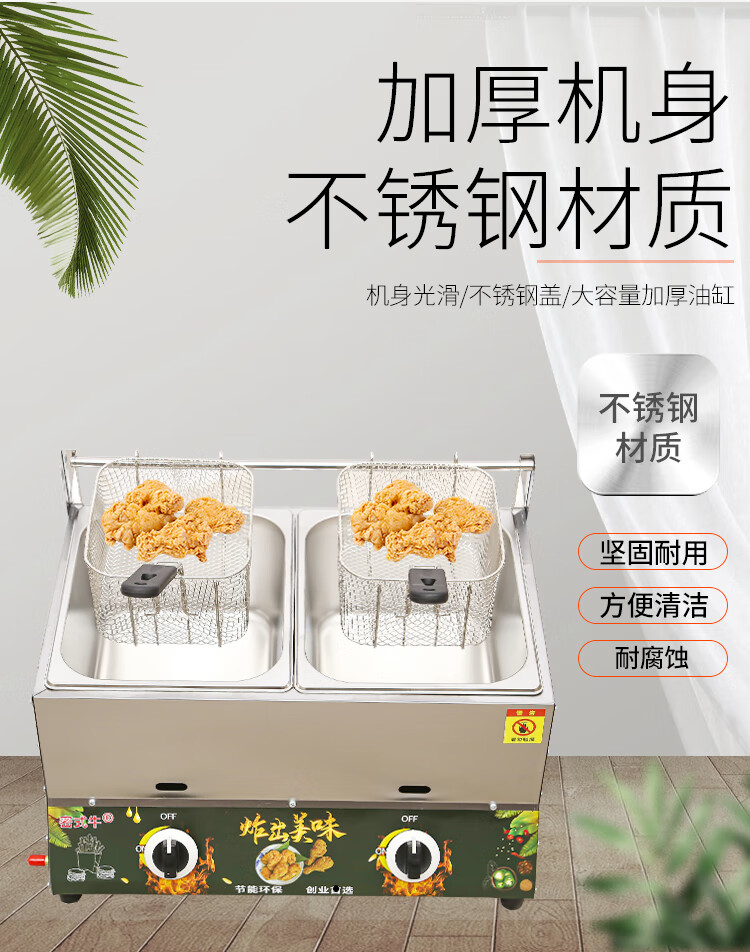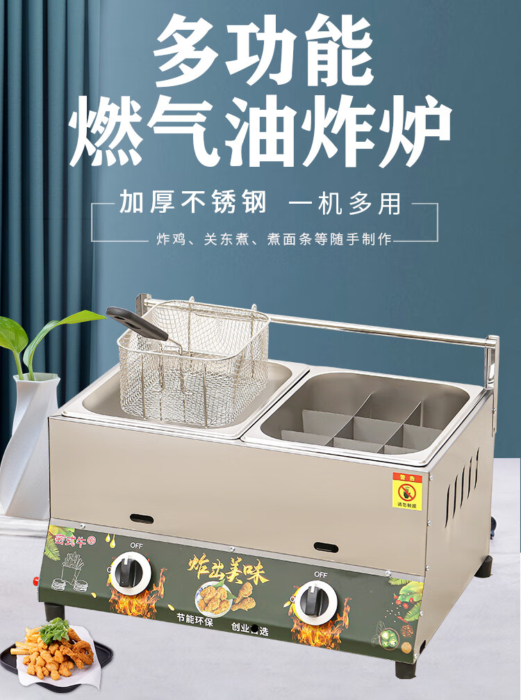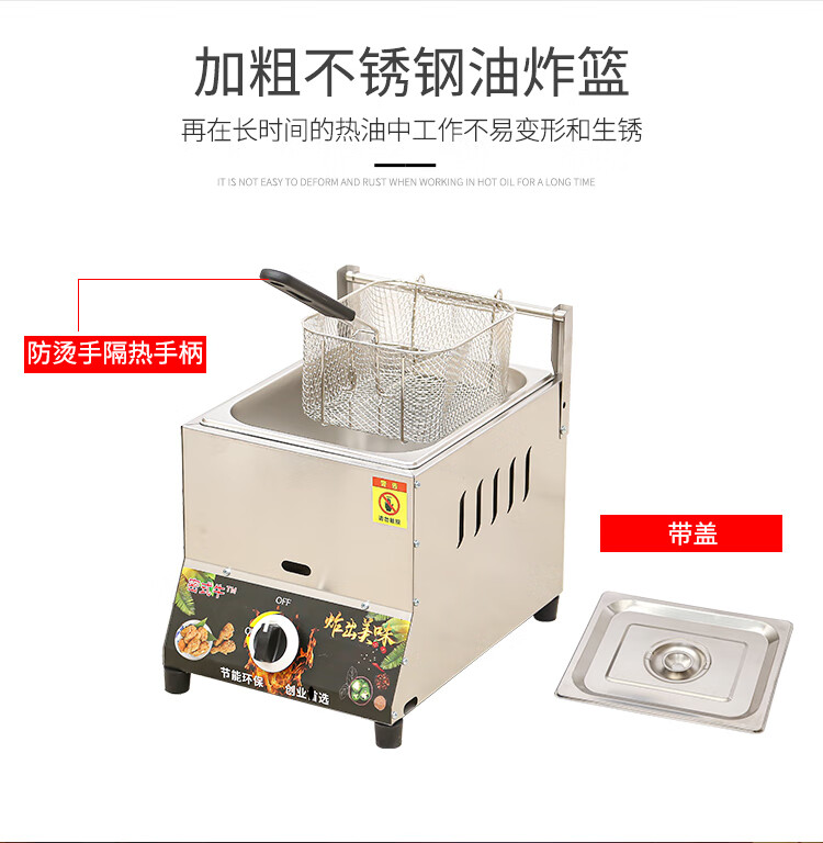 Pujies commercial gas fryer gas liquefied gas fryer noodle cooker stall fried skewers chicken chops French fries fryer thickened single pot frying basket