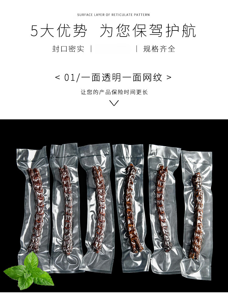 Huishangjia air-dried duck neck vacuum bag food bag beef jerky vacuum texture bag high temperature cooking bag vacuum food bag small 5*15cm*19 silk (100 pieces per pack) texture bag vacuum packaging bag