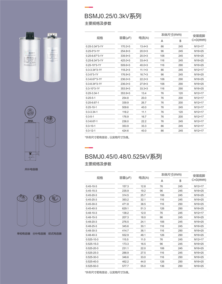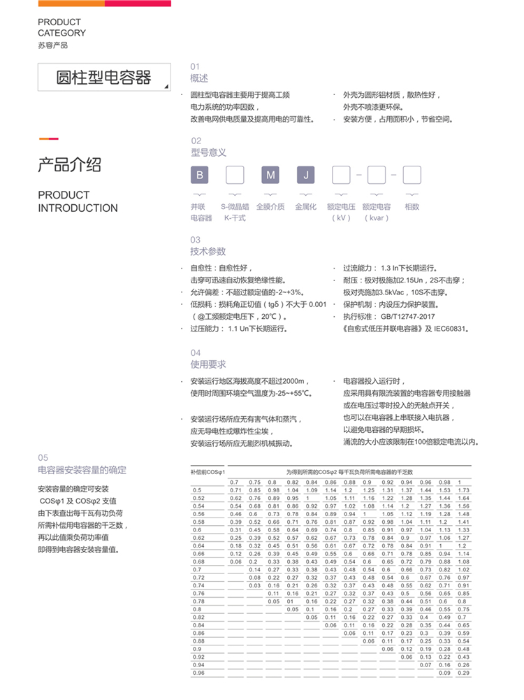 Suzhou cylindrical BSMJ0.45/0.48-30-3 reactive power compensation self-healing parallel power capacitor 048303