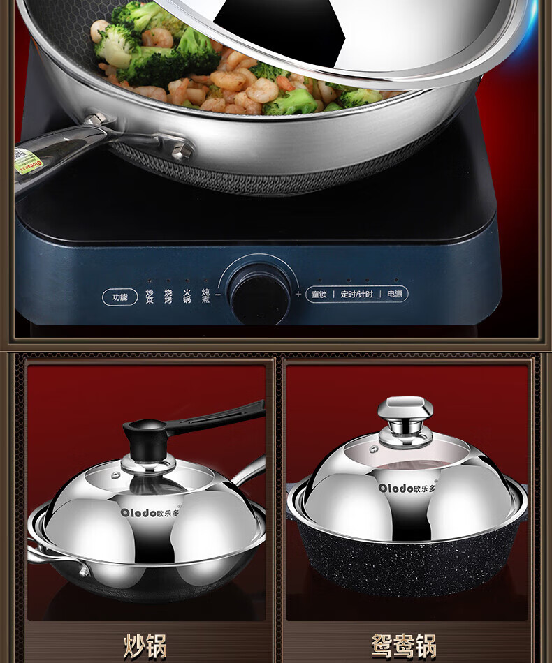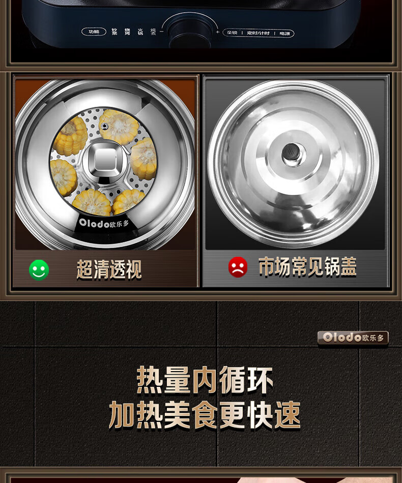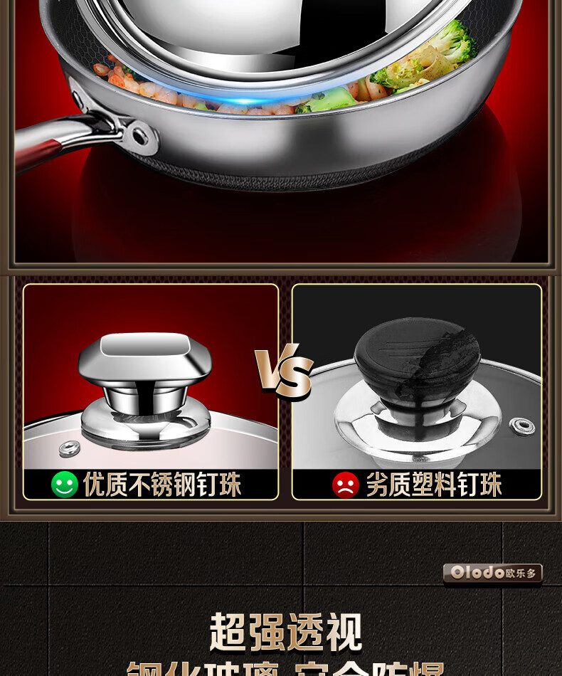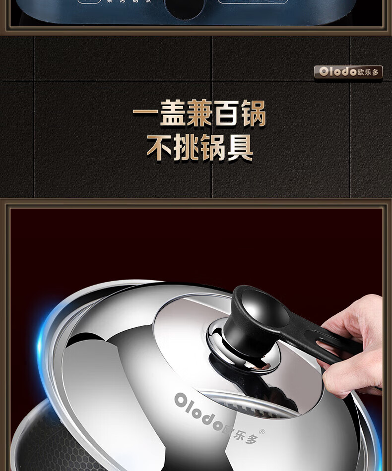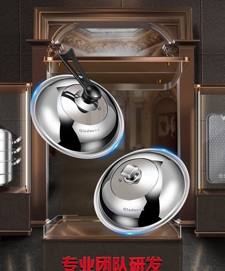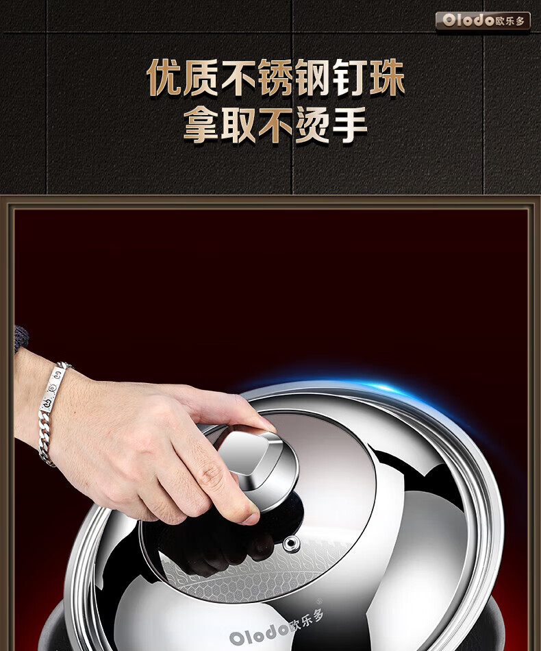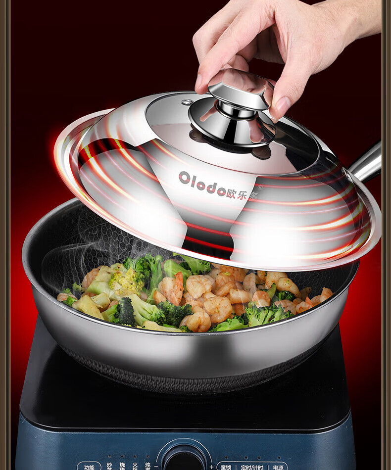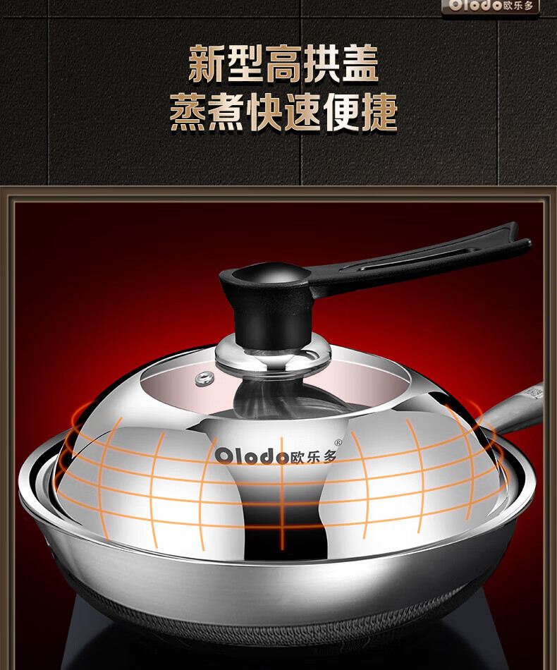 Olodo German stainless steel pot lid household wok lid visible pot lid heightened pot lid high arch pot lid steamer lid universal 32cm upright long handle pot lid visible