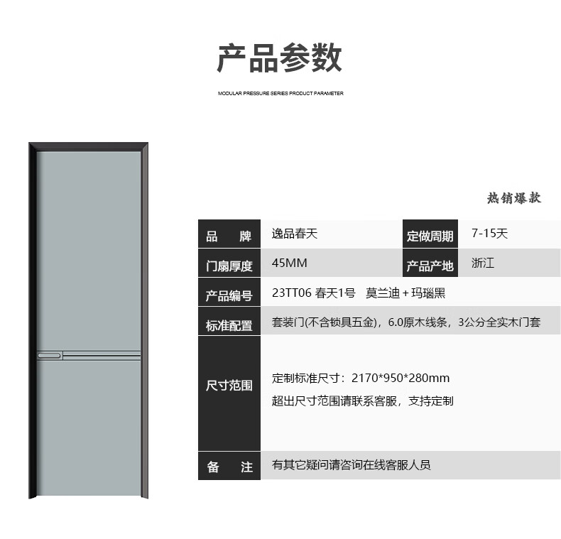 Yipin Spring Wooden Door Bedroom Door Room Door Kitchen Door Paint-Free Door Solid Wood Composite Environmentally Friendly Door High-end Customized Door 23TT06 Spring No. 1 + Morandi Agate Black
