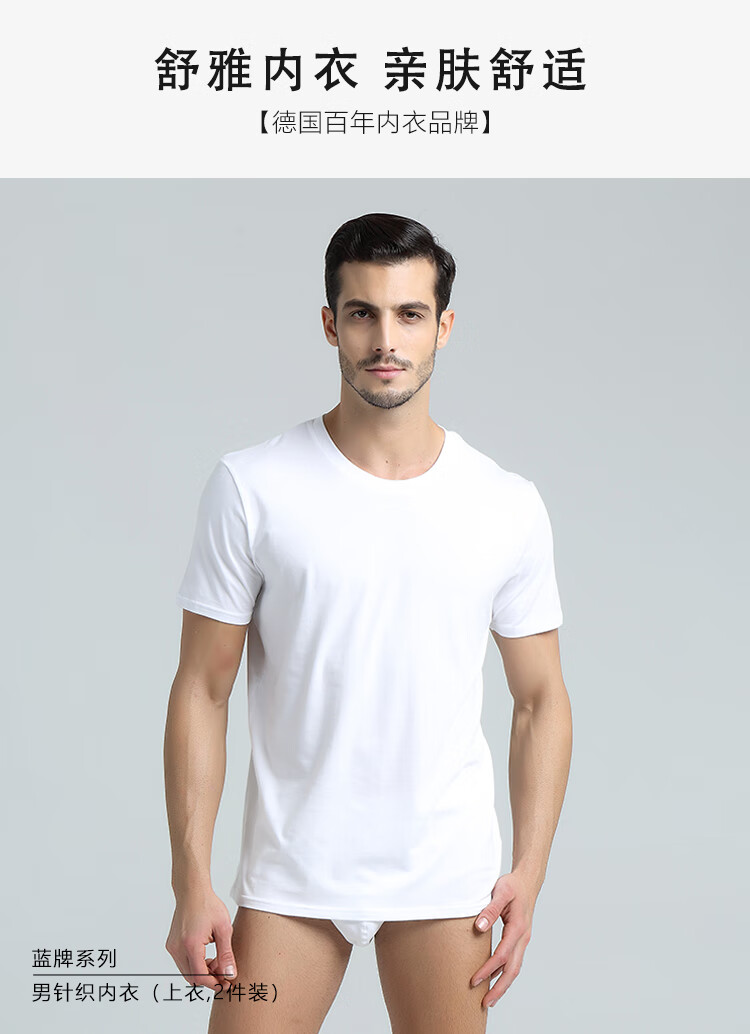 Shuya German Shuya underwear men's 2-pack 20030M Shumei cotton round neck short-sleeved tops bottoming undershirt T-shirt white 2-pack M