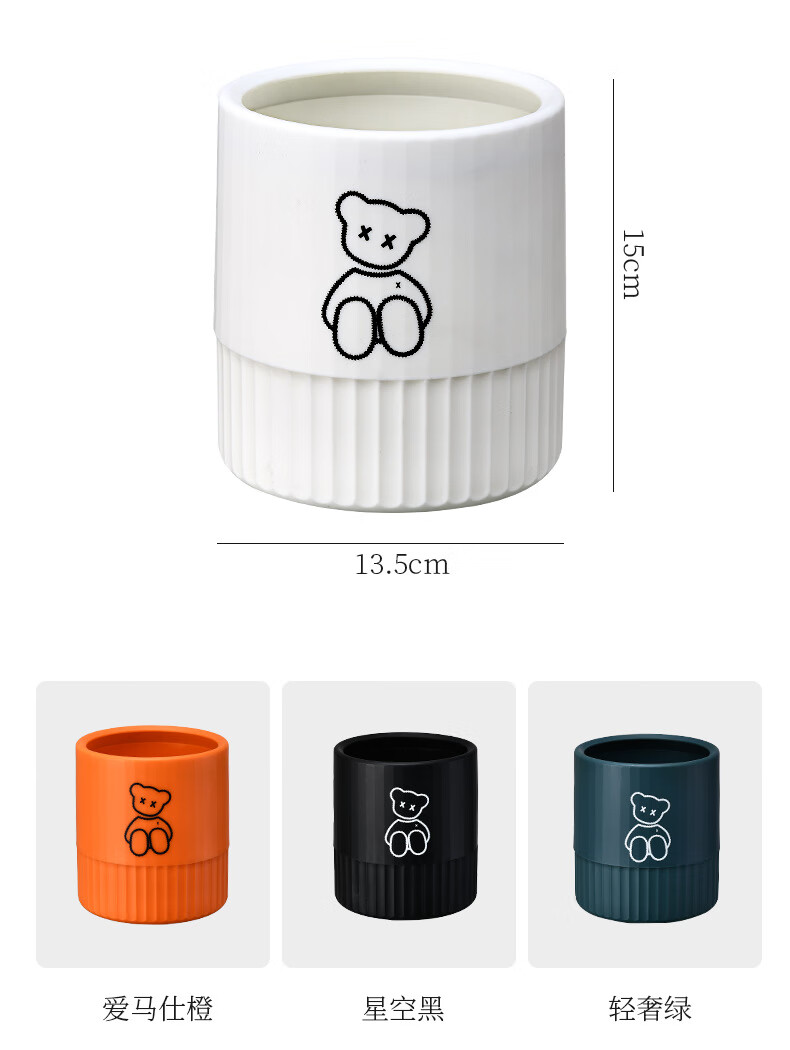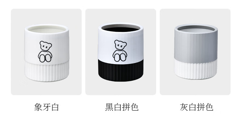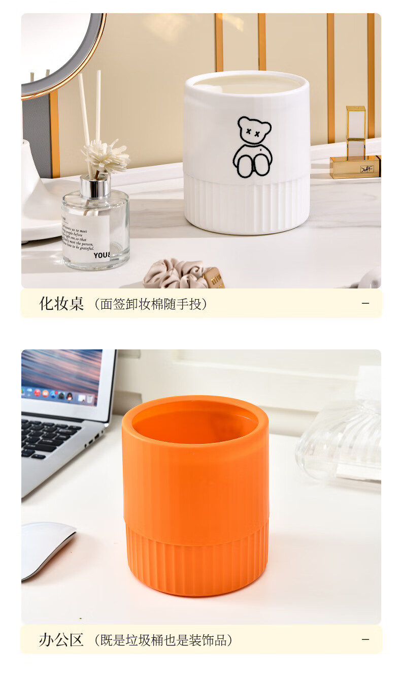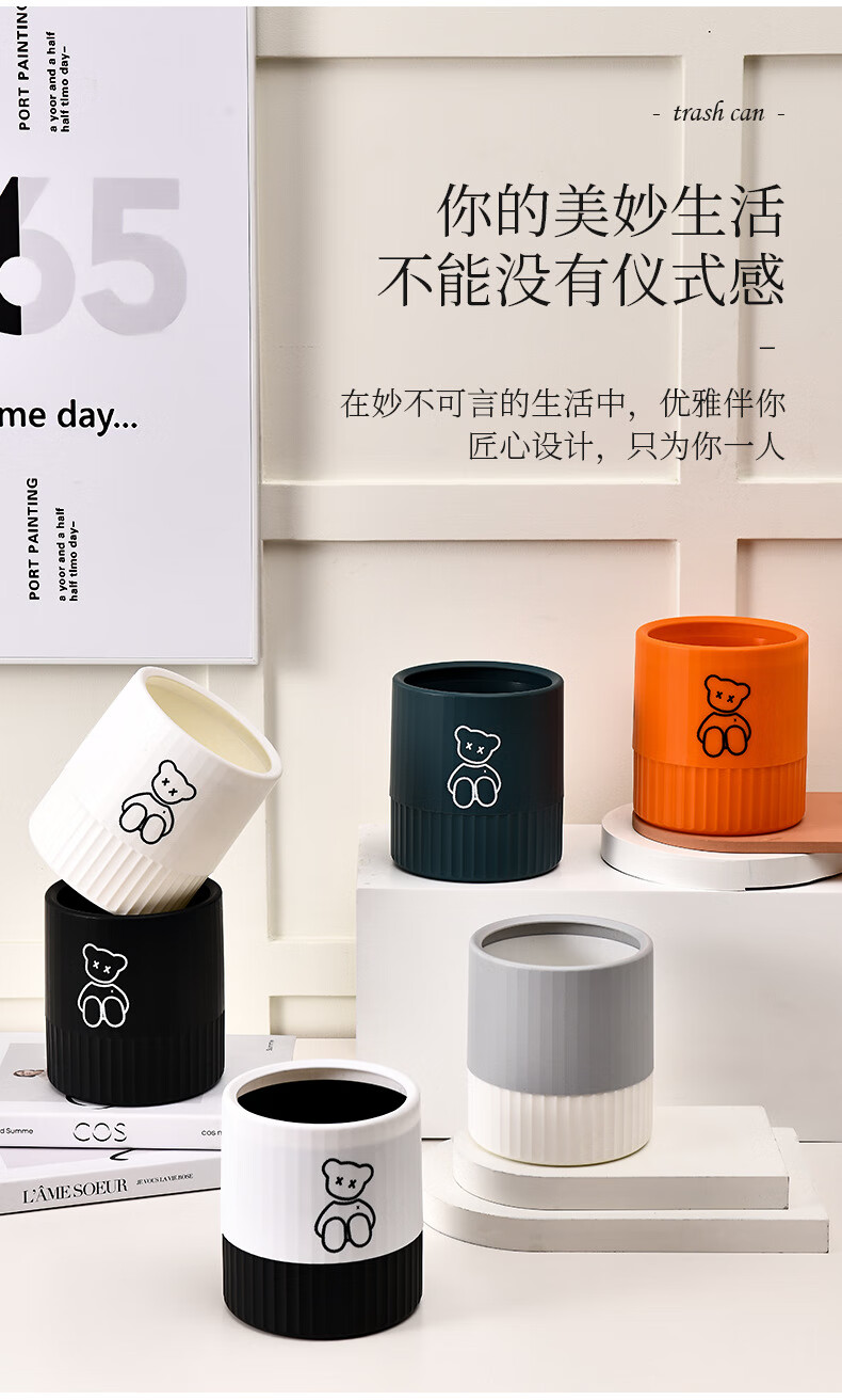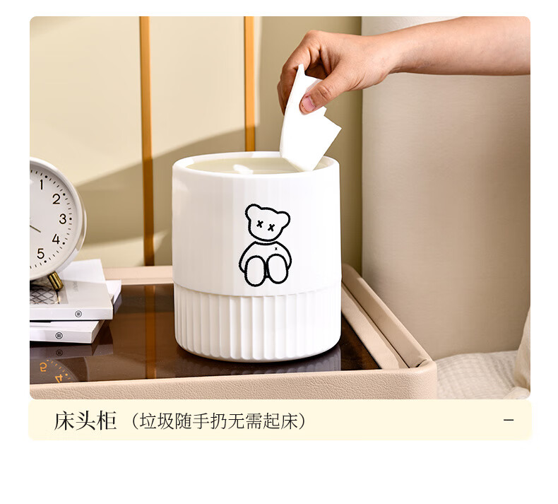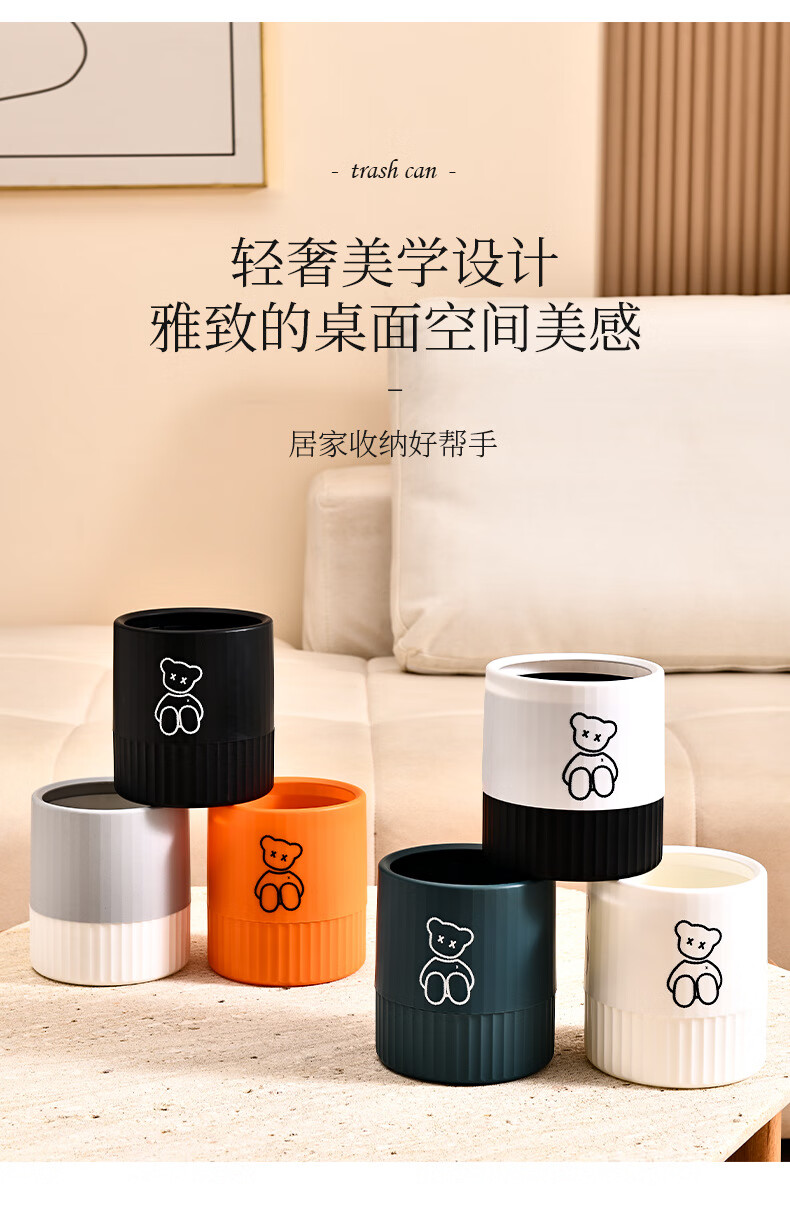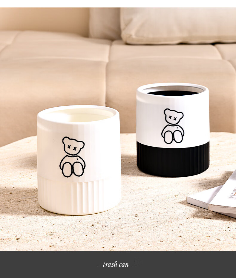 Fanxi Nordic Round Mini Coverless Desktop Trash Can Coffee Table Living Room Office Study Desk Children's Trash Can Ivory White Bear