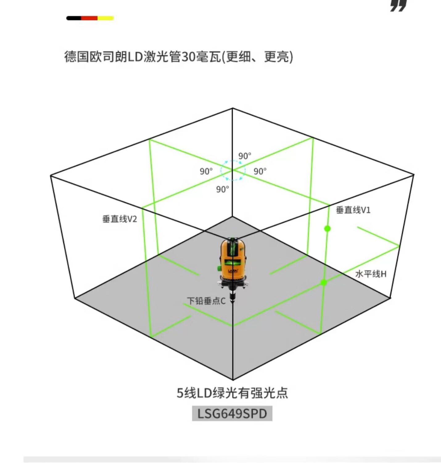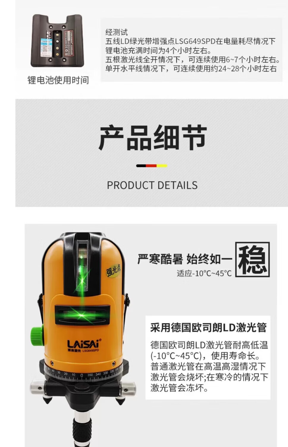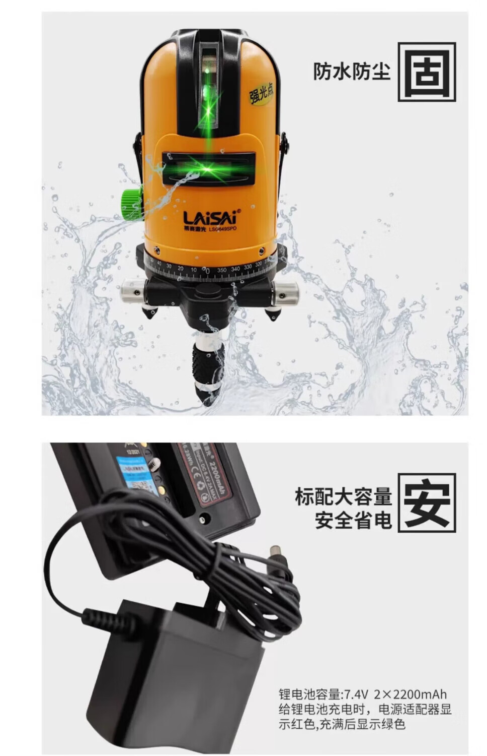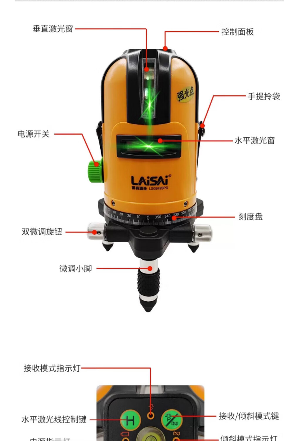 Laser level laser leveler strong light thin line 5 lines enhanced point green light LSG640 high precision LSG649 outdoor infrared highlight Laser 640 dual battery (5 lines 3 points strong green light)