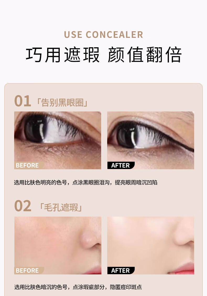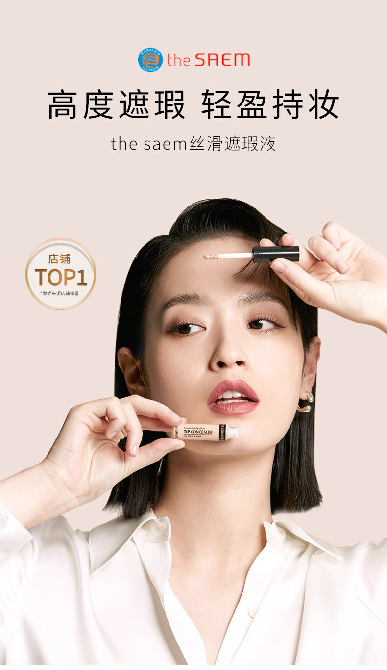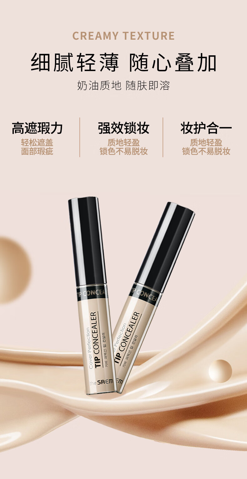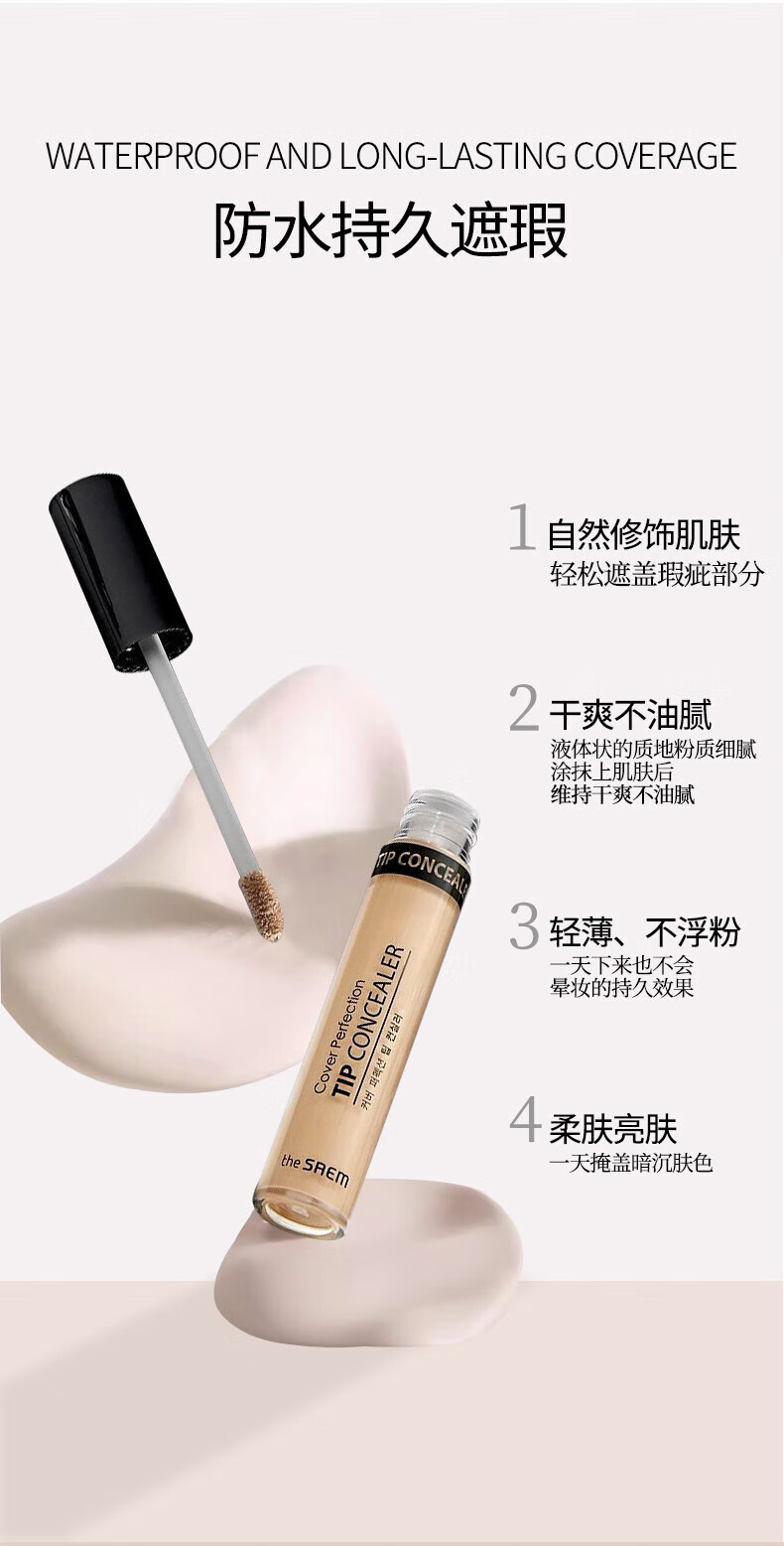 Dexian Korea THE SAEM Dexian Concealer Silky Liquid Foundation Concealer Covers Spots Dark Circles Lips No. 01 Bright Skin Color Single Color