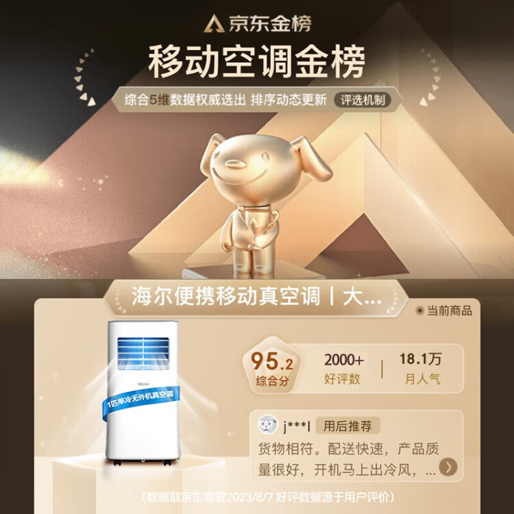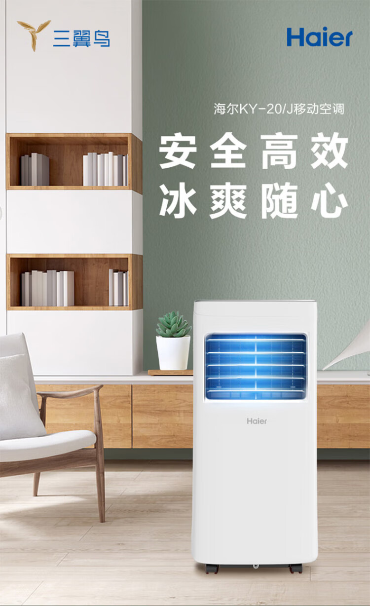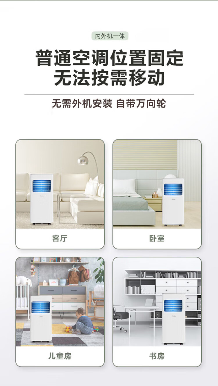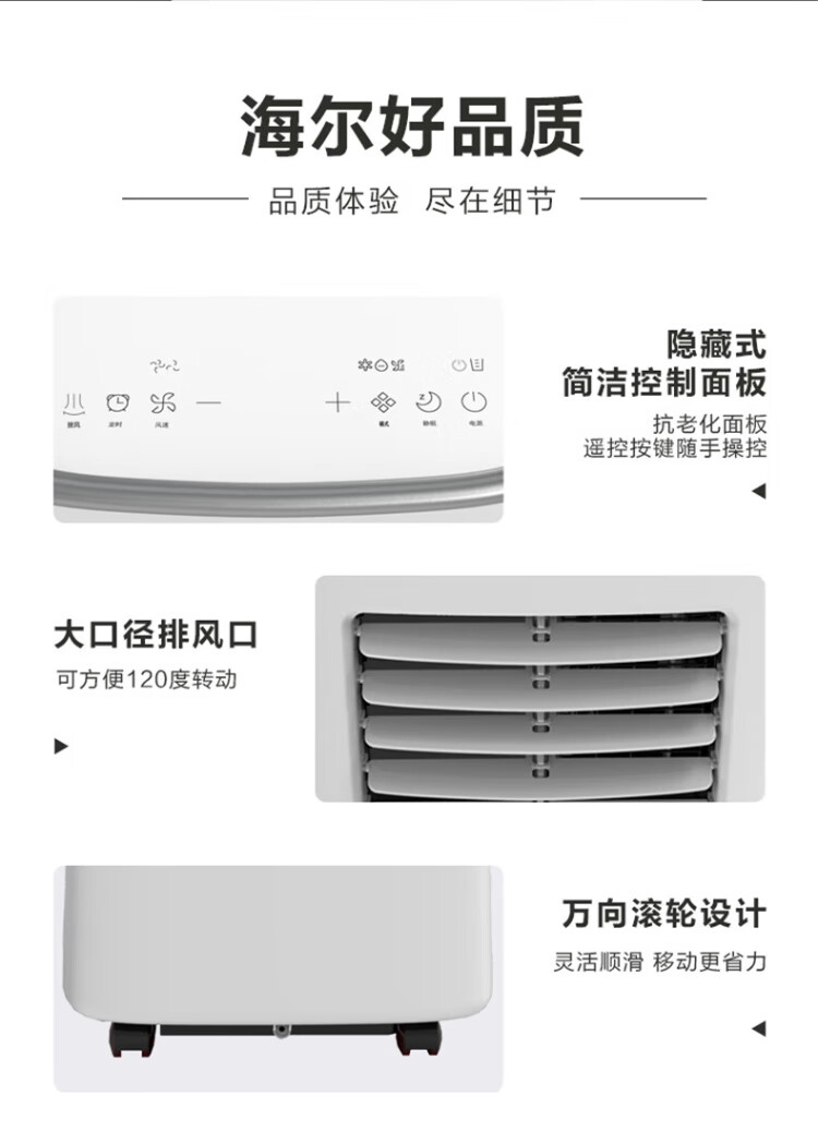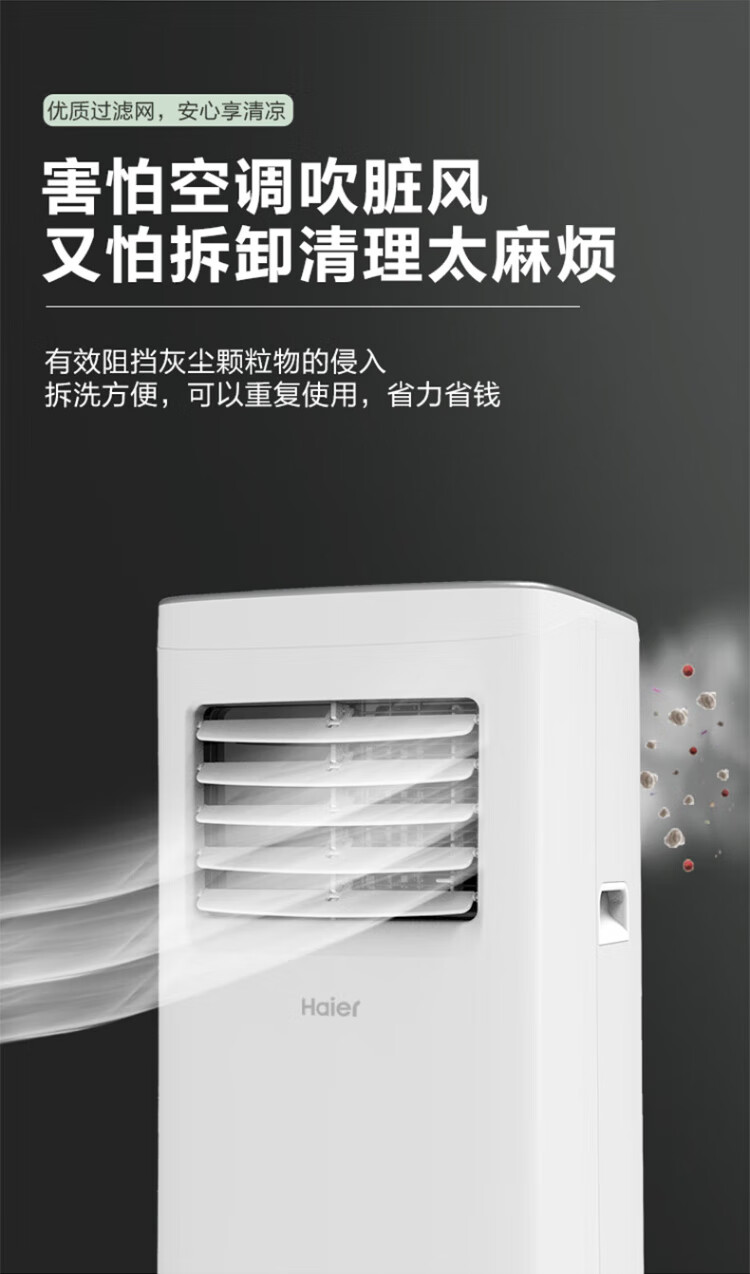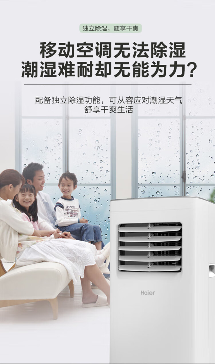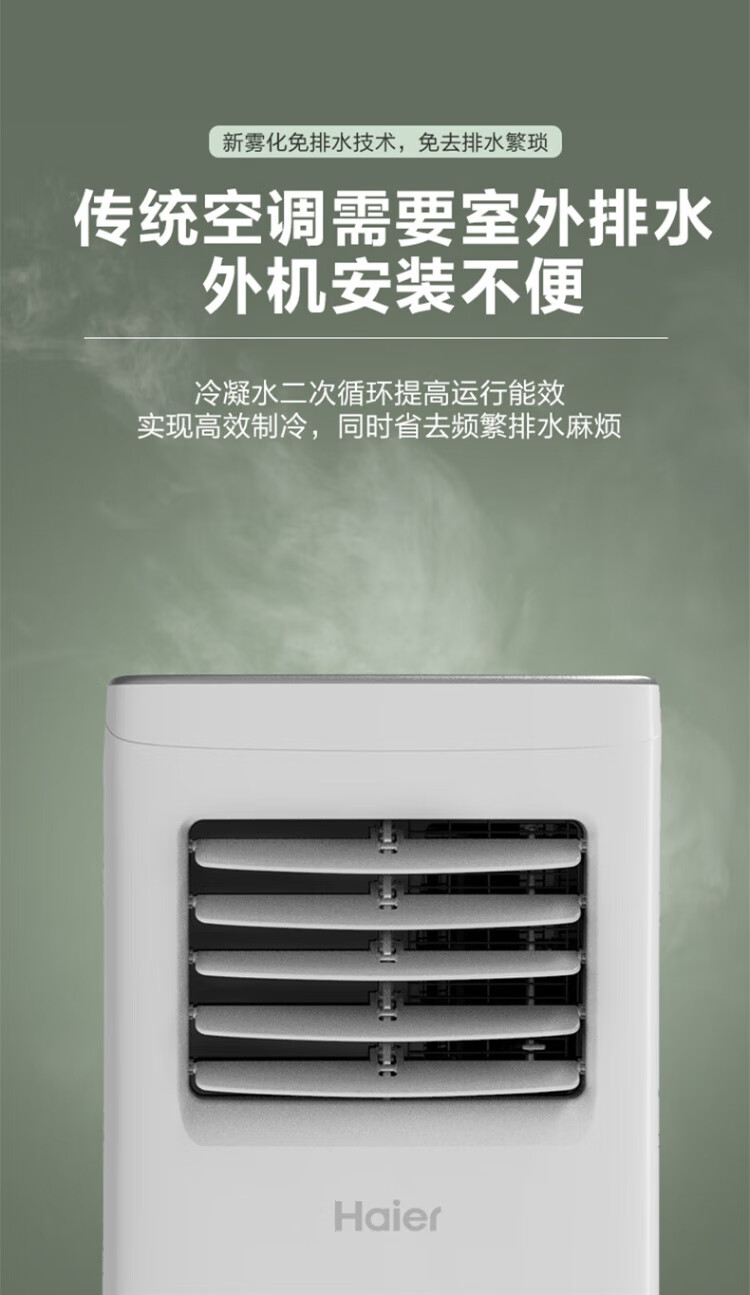 Haier mobile air conditioner, home kitchen room, vacuum air conditioning, refrigeration and dehumidification all-in-one machine, no hang-up installation, no drainage, smart portable vertical air conditioner, large 2 HP, single cooling (within 30) new product