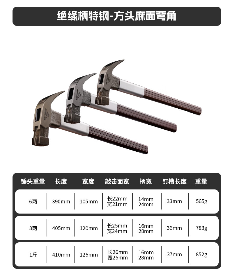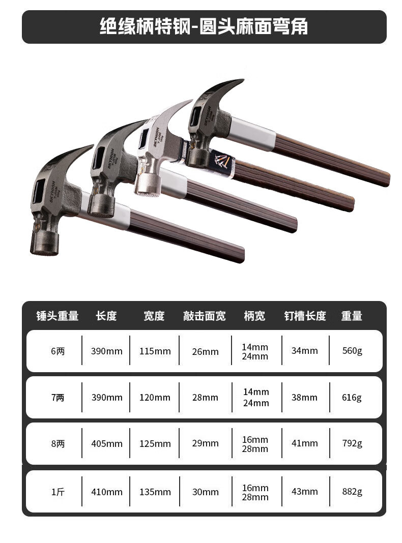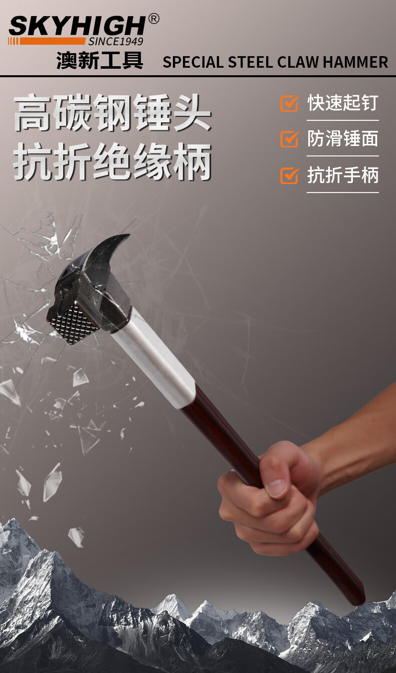 Australia, New Zealand, Australia and New Zealand insulated handle claw hammer, high carbon steel nail pulling hammer, construction site hammer, woodworking hammer, strong magnetic nail suction, round head tooth surface, 6 taels, magnetic corner J09M