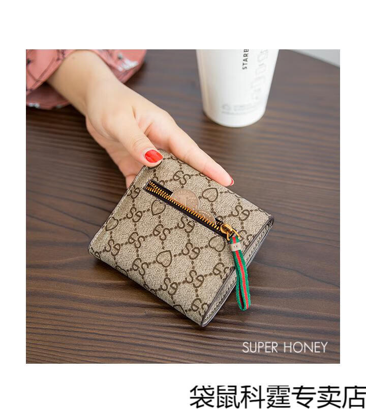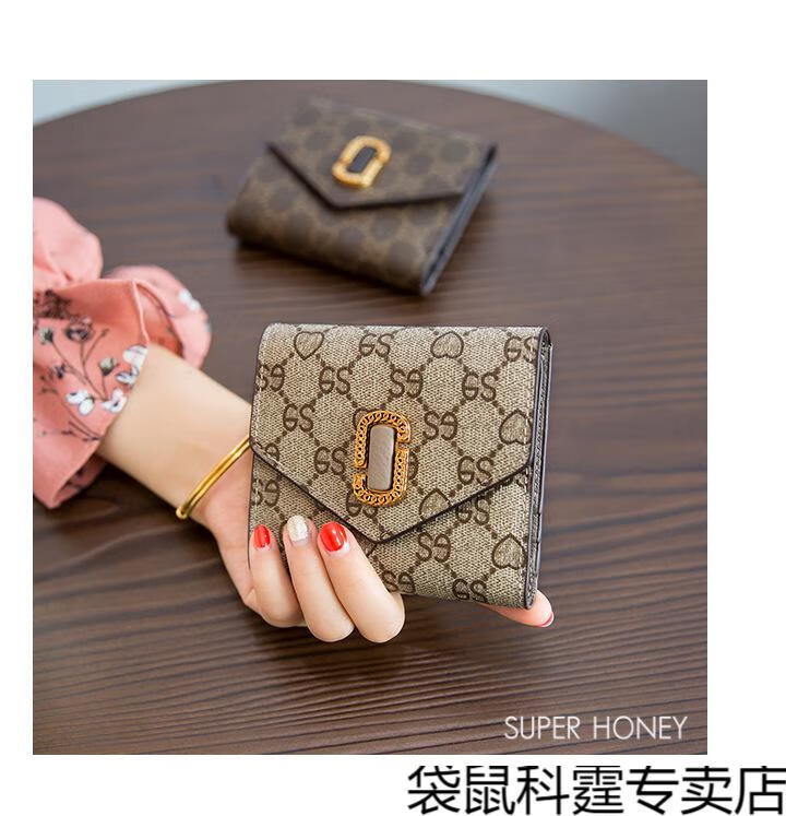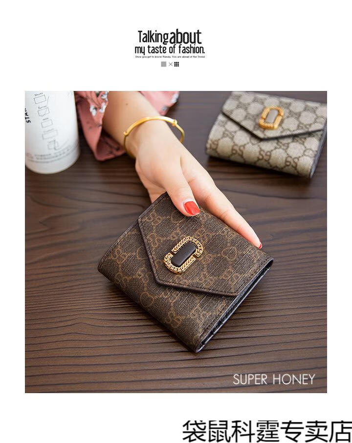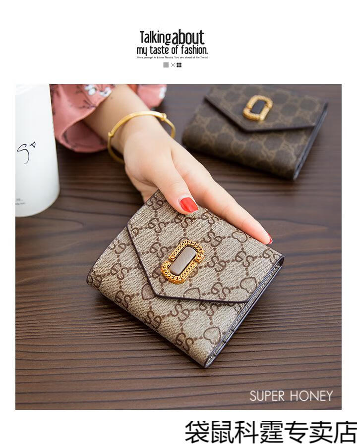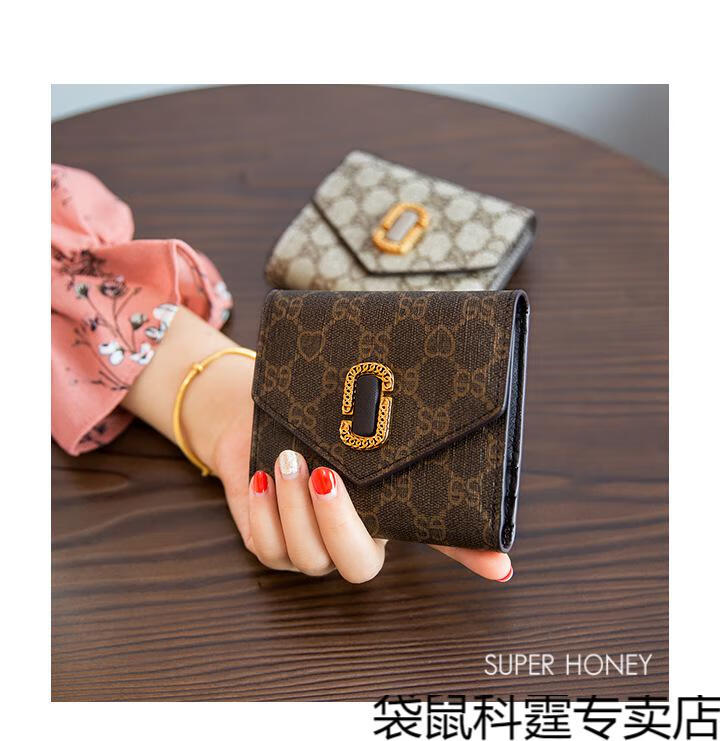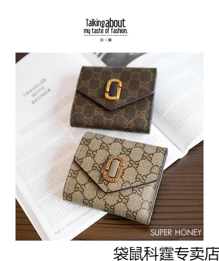 CALCULAT&KEEN small wallet women's short mini bag 2025 new versatile printed folding cowhide wallet card bag brown