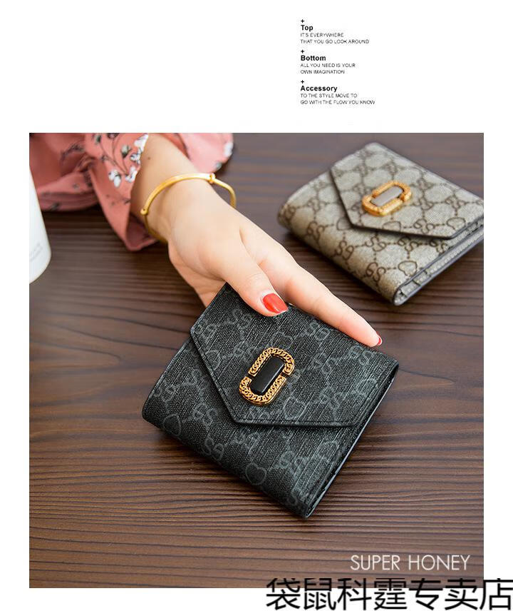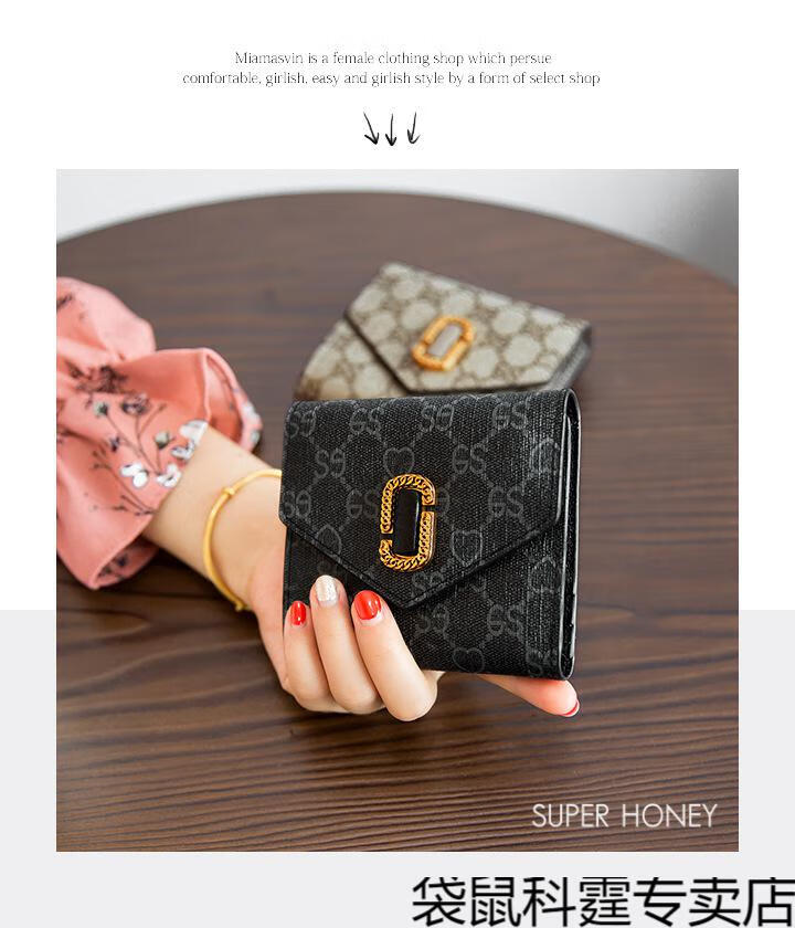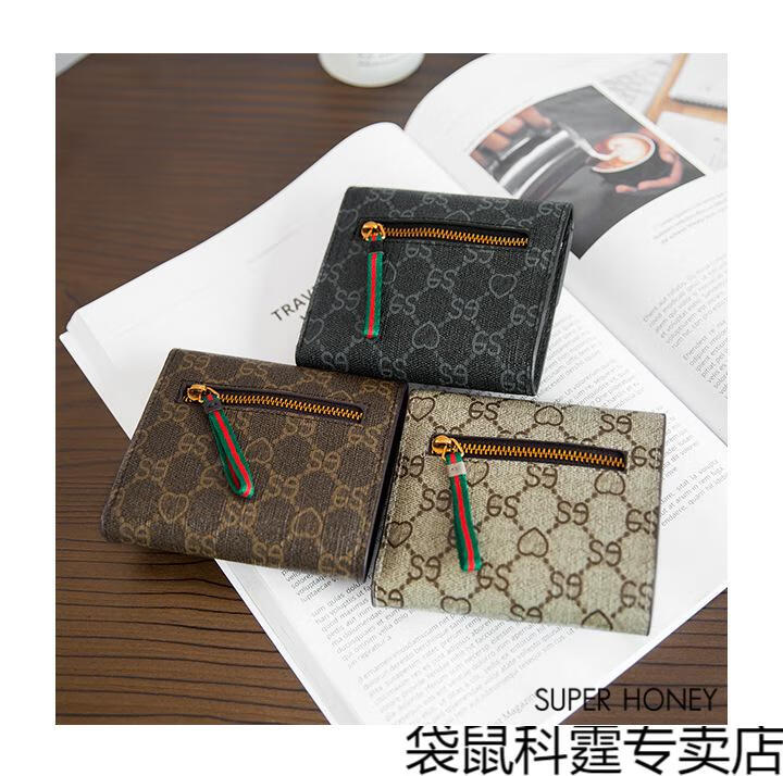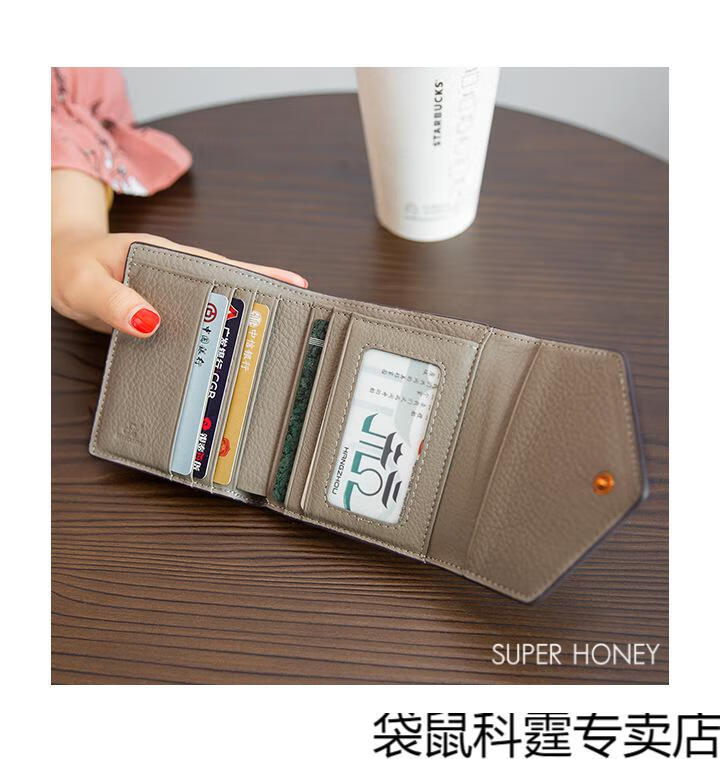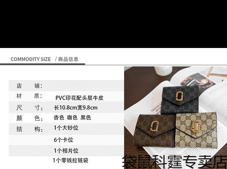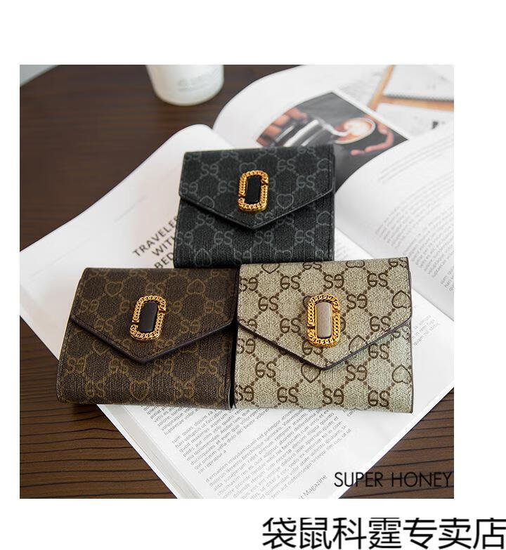 CALCULAT&KEEN small wallet women's short mini bag 2025 new versatile printed folding cowhide wallet card bag brown