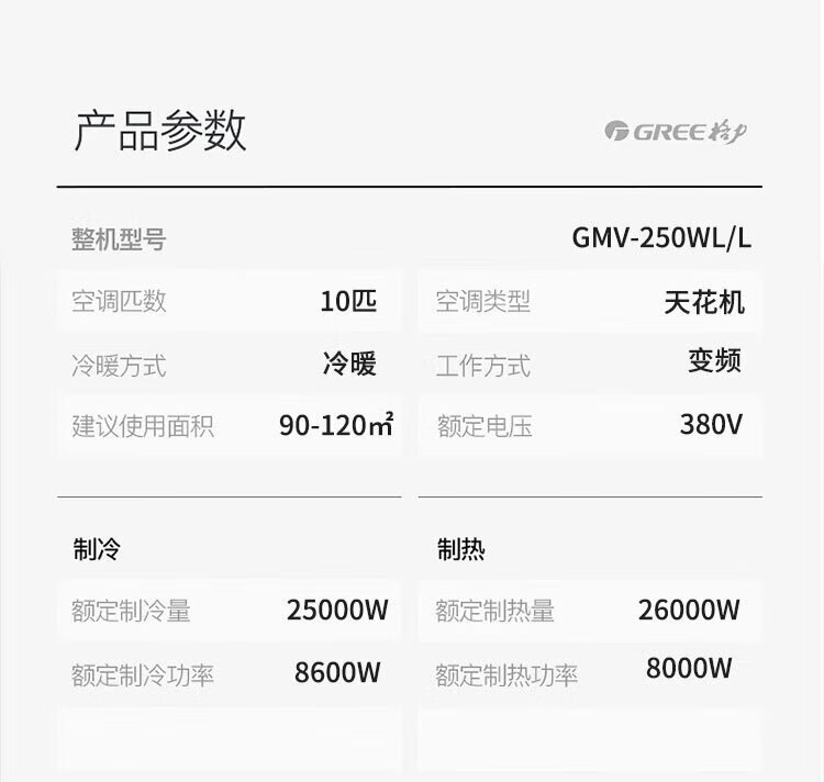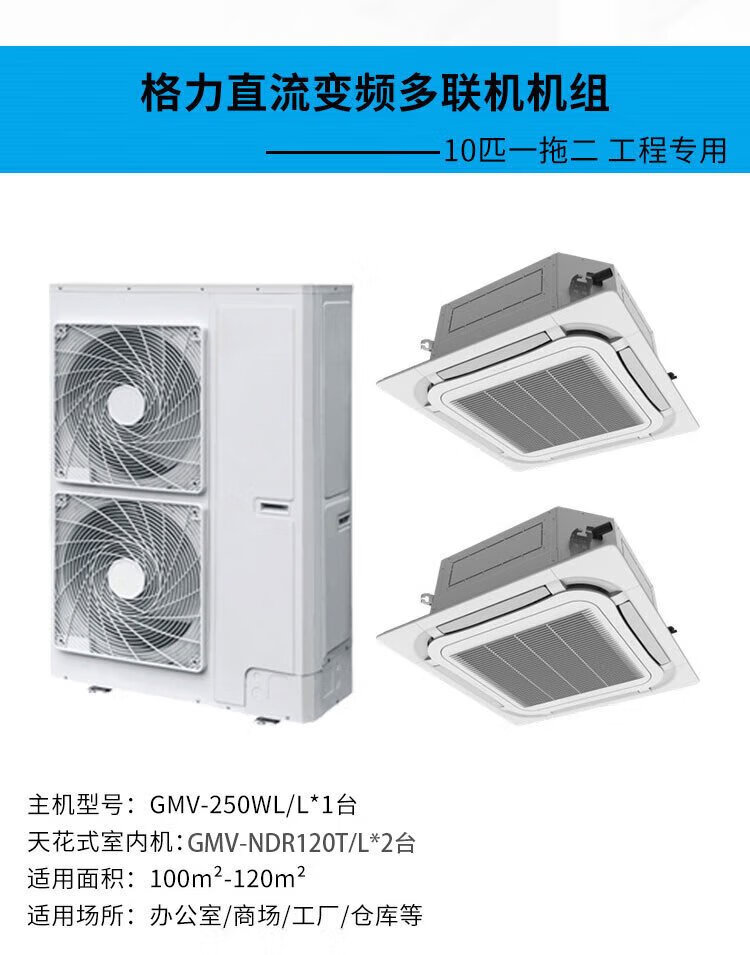 Gree central air-conditioning ceiling unit 10 HP one-to-two variable frequency heating and cooling 380V multi-split commercial central air conditioning unit patio unit outdoor unit GMV-250WL/La 10 HP second-level energy efficiency indoor unit GMV-NR125T/La