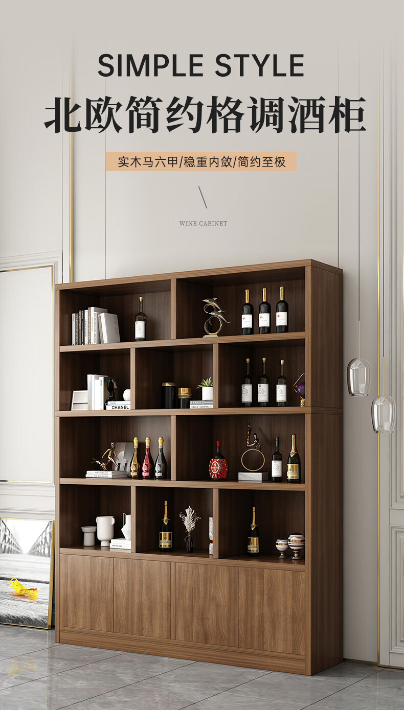 Shousheng wine cabinet display cabinet solid wood wine rack home storage cabinet living room partition cabinet red wine tea cabinet multi-functional entrance cabinet solid wood wilderness color combination 200*24*180