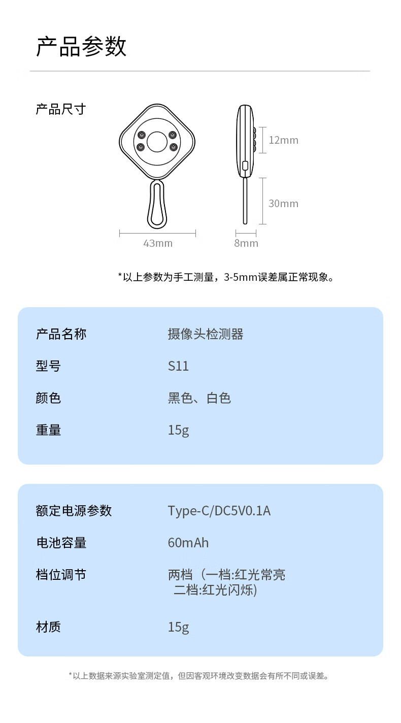 Transpiration camera detector hotel anti-shooting detector anti-monitoring red zone detection sensor detector portable white