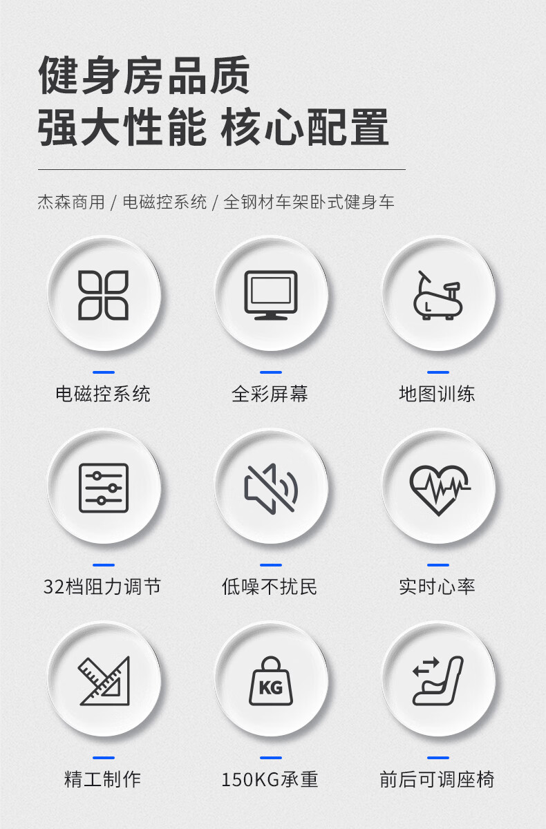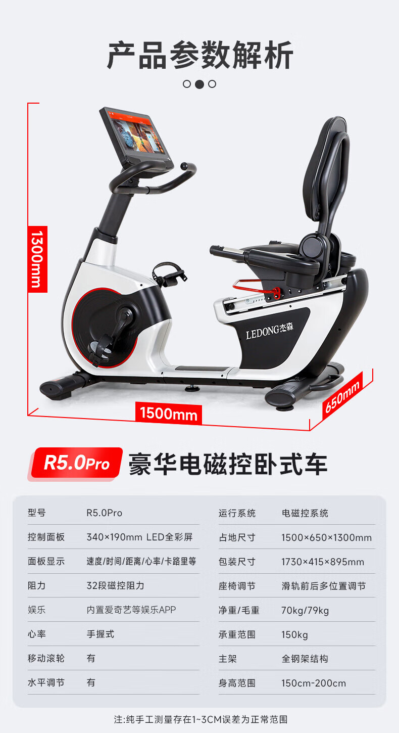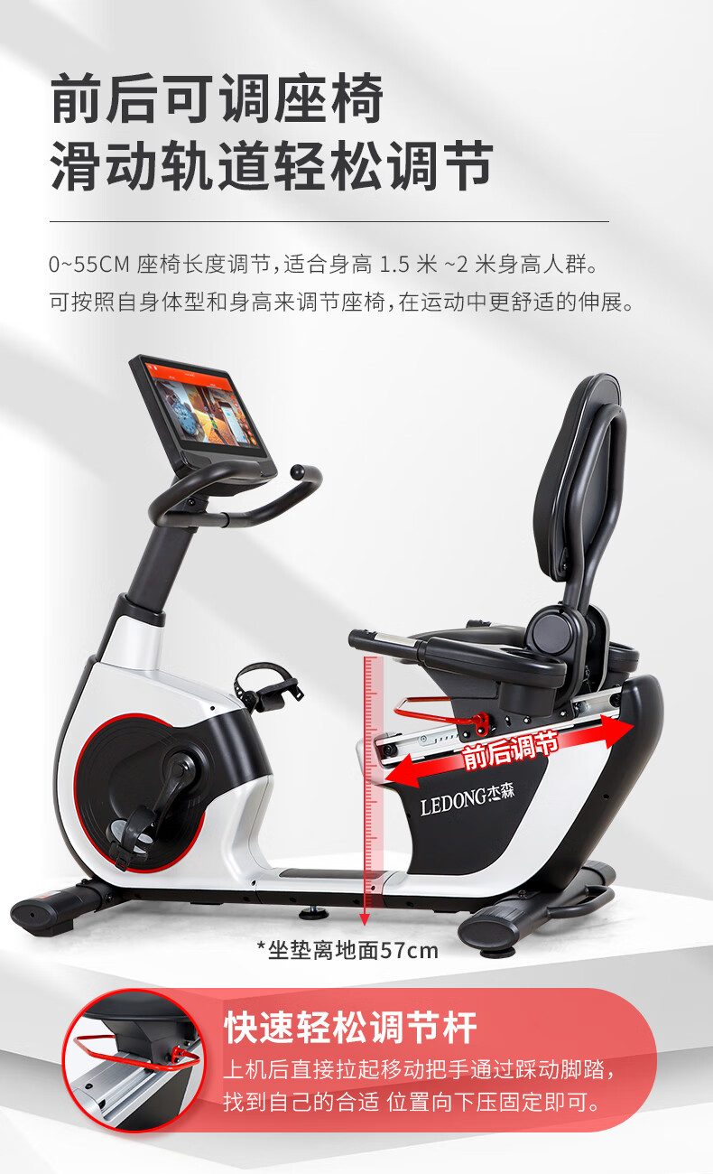 Jason (LEDONG) horizontal exercise bike home commercial spinning bike indoor fitness bike high-end fitness equipment R5.0pro smart touch color screen 32-speed electromagnetic control can be connected to wifi