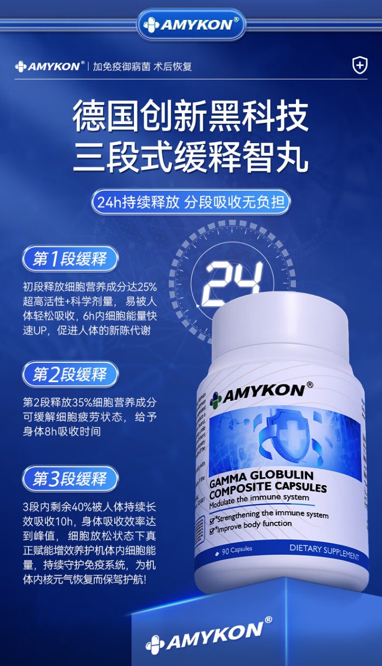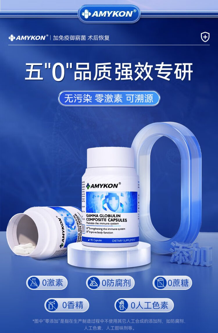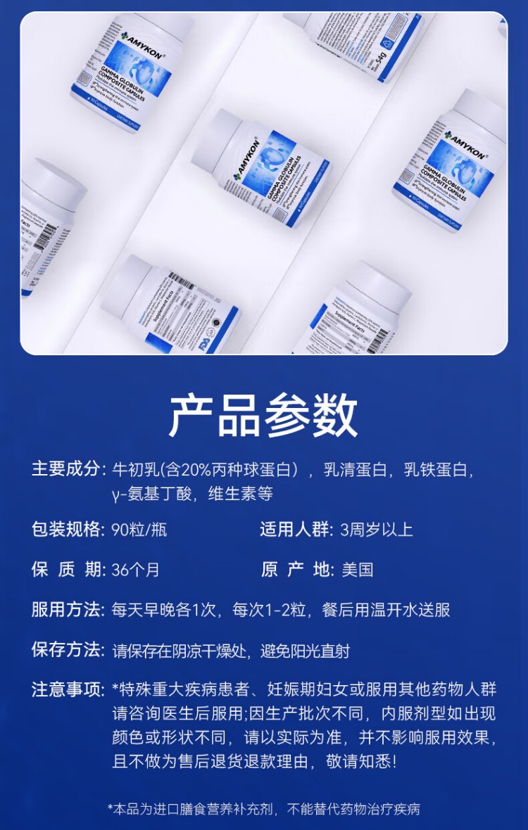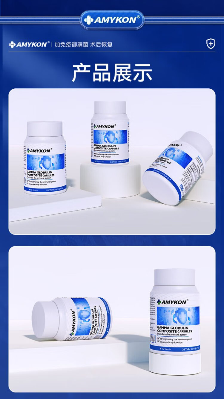 AMYKON bovine colostrum powder gamma immunoglobulin pills improve immunity children and adults postoperative recovery nutrition 90 capsules immune doubling immune globulin 90 capsules * 4 bottles