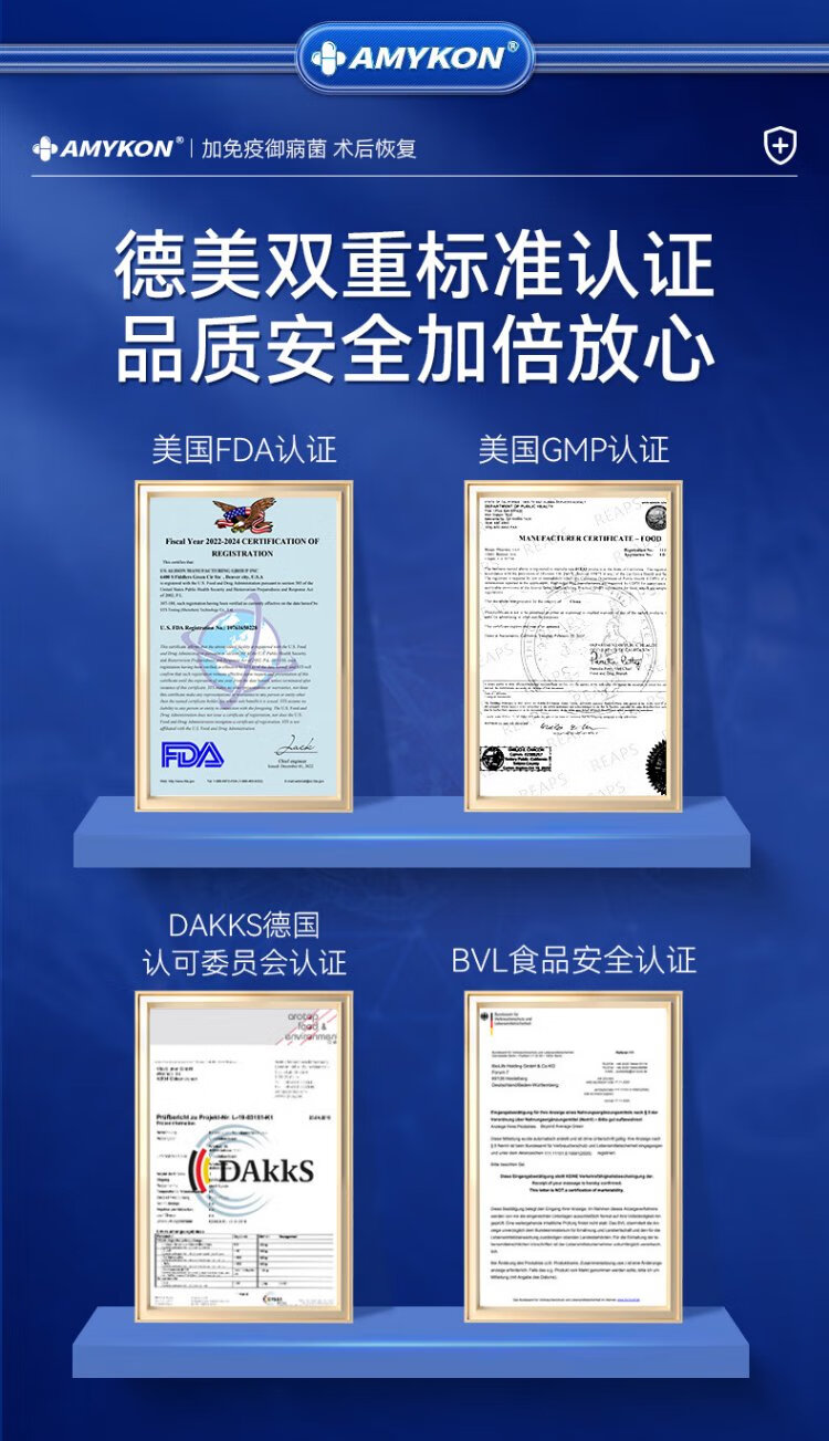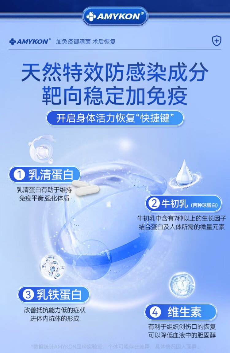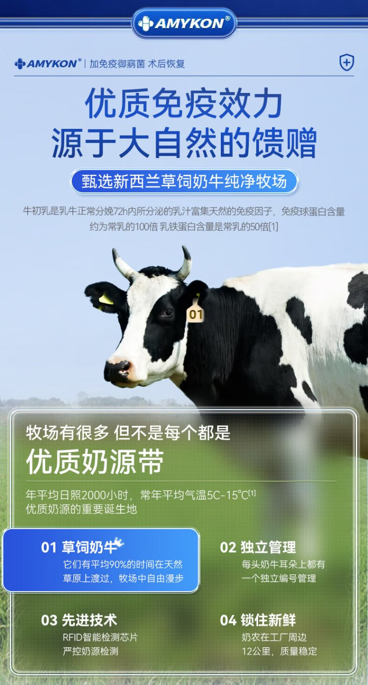 AMYKON bovine colostrum powder gamma immunoglobulin pills improve immunity children and adults postoperative recovery nutrition 90 capsules immune doubling immune globulin 90 capsules * 4 bottles