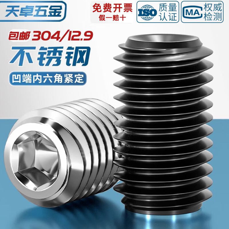 Tianzhuo Hardware Concave End Tightening 304 Stainless Steel Hexagon Screw Headless Machine Top Screw M2M3M4M5M6M8M10M12 304-M5*4-100 pcs