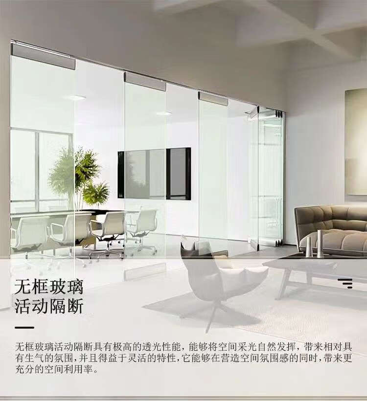 Renjuyi Glass Clamp Door Frameless Folding Door Aluminum Alloy Tempered Glass Balcony Hanging Rail No Lower Rail Sliding Moving Door Panoramic Frameless Folding Together/Sq.