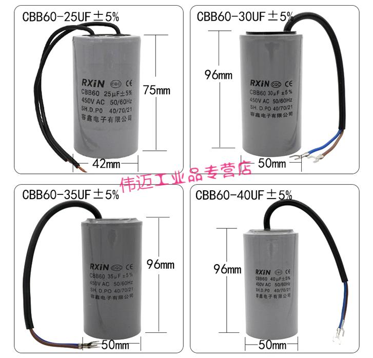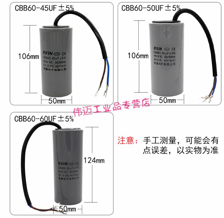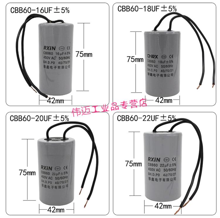 Suitable for CBB60 capacitor 450V single-phase submersible pump air pump bench drill capacitor motor starting operation Rongxin CBB60-16UF