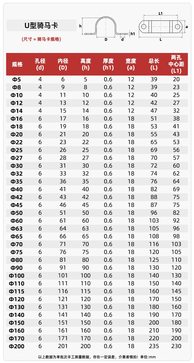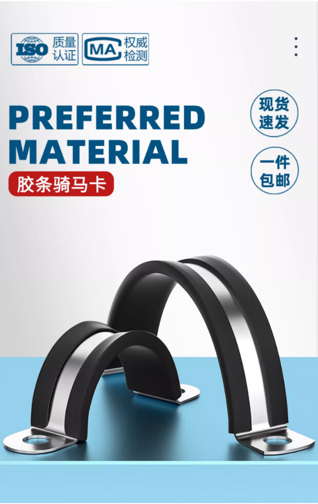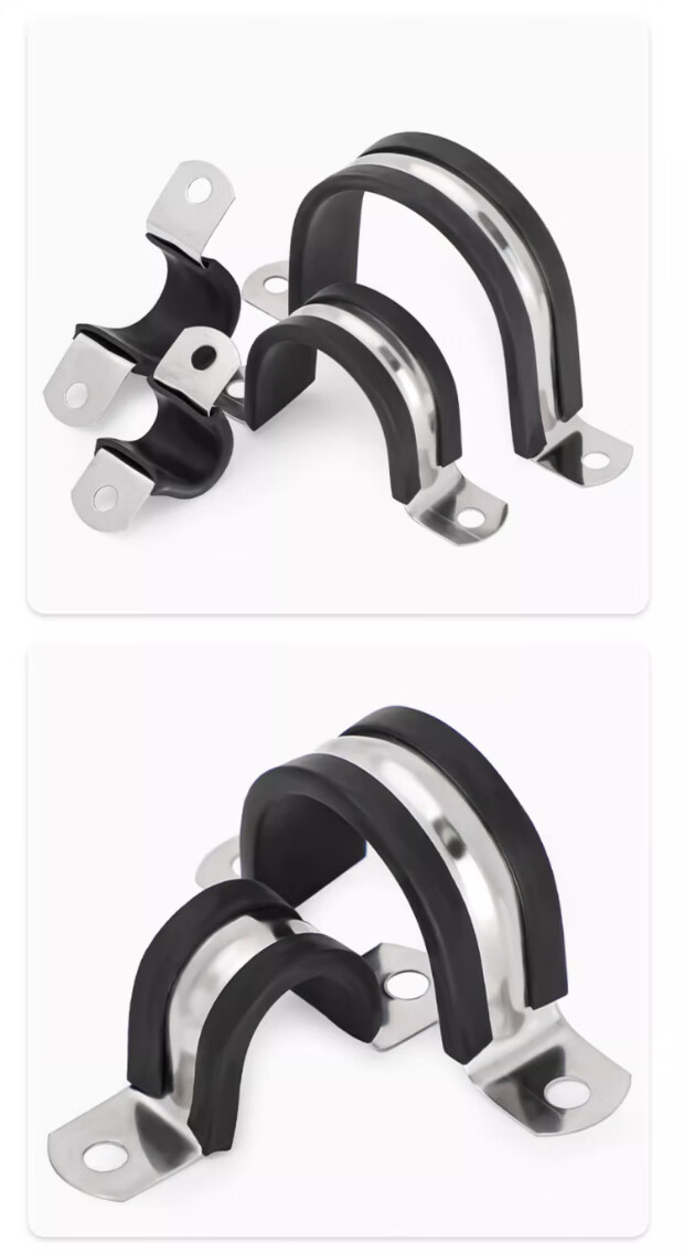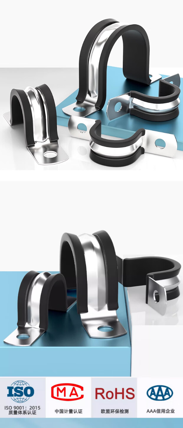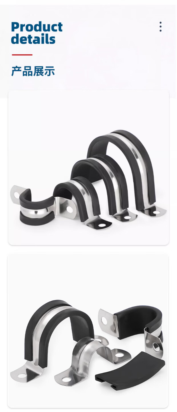 Tianzhuo Hardware 304 stainless steel U-shaped belt with rubber strip riding clip steel pipe buckle clamp clamp pipe clamp fixed cable hose hoop locking with rubber strip 20mm 5 pieces (4 tubes)