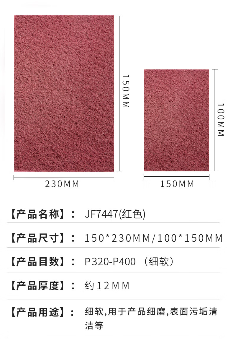 JF7447 scouring pad, industrial vegetable melon cloth, emery polished brushed cloth, kitchen stainless steel rust removal cleaning cloth, JF7447 red, 100 pieces, 15*10cm