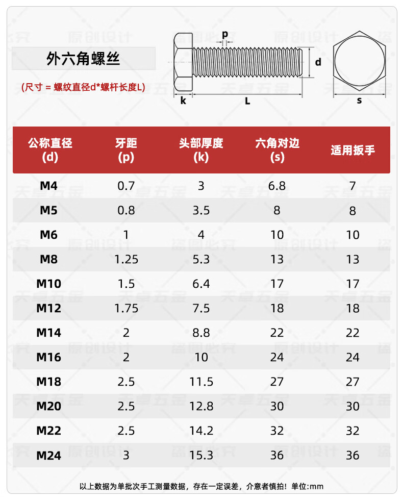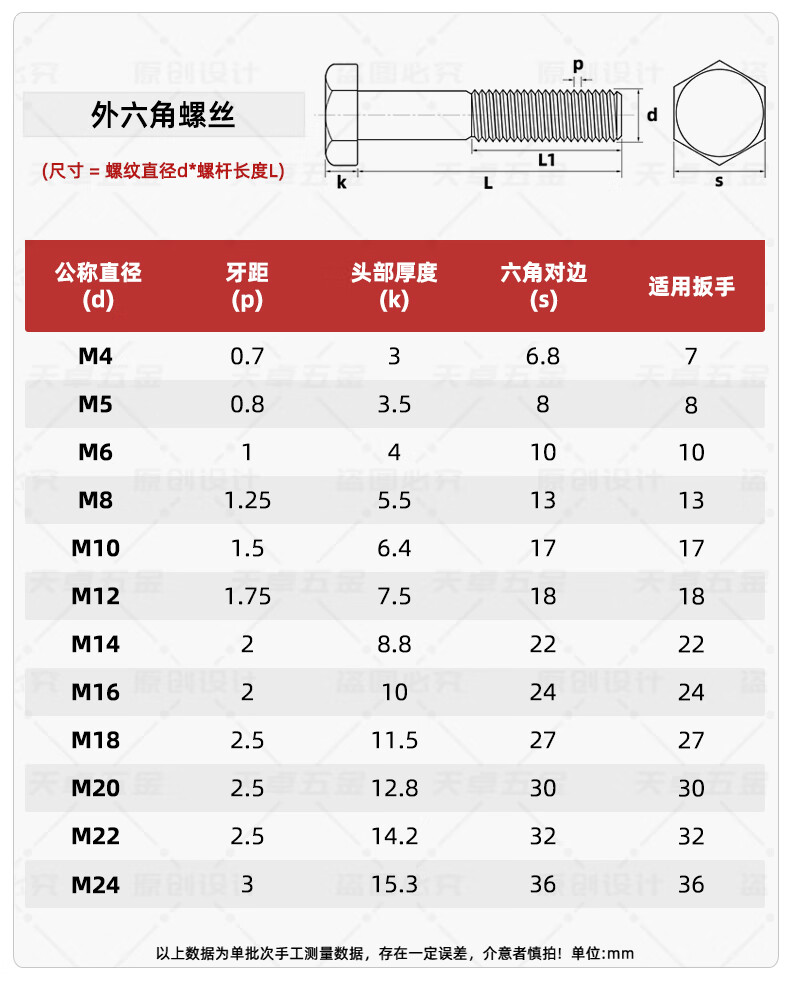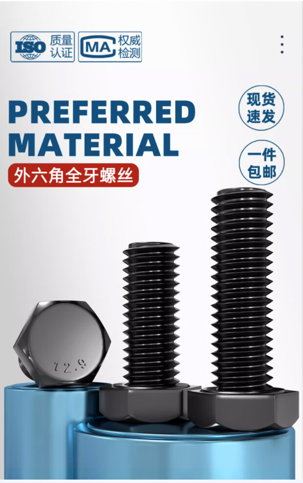 Tianzhuo Hardware Grade 12.9 high-strength external hexagonal screws bolts M5M6M8M10M12M14M16M18M20M22M24 M8*30 full thread - 10 pcs