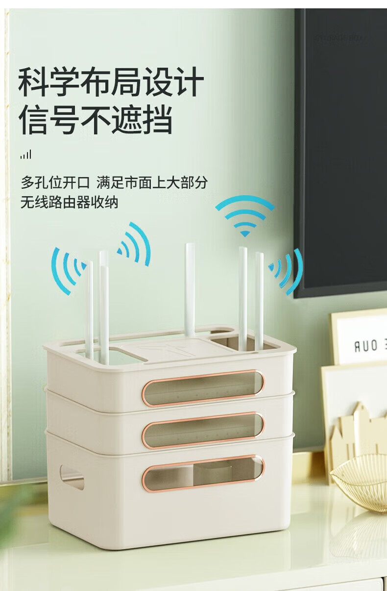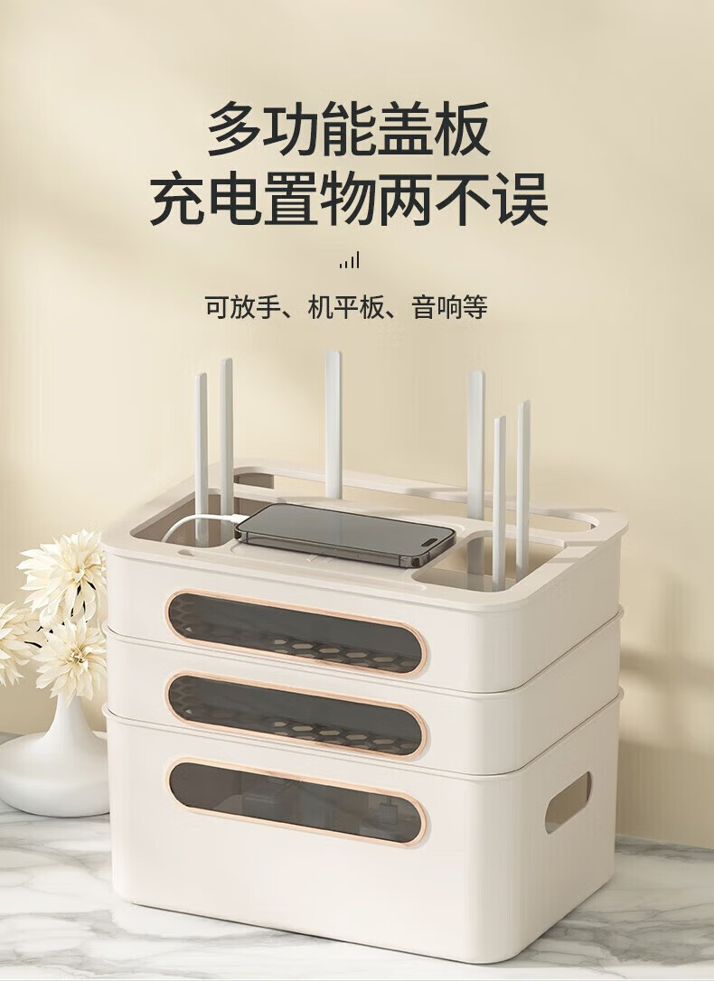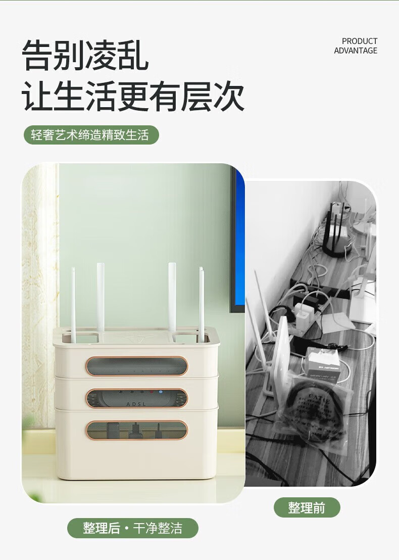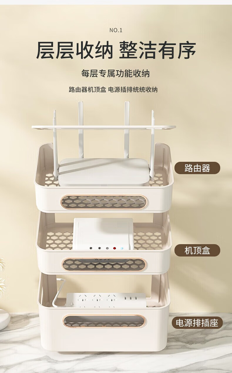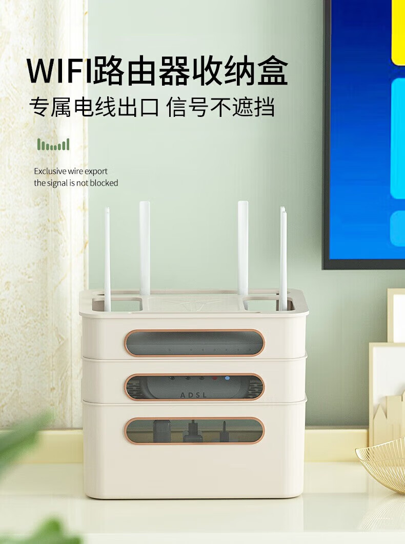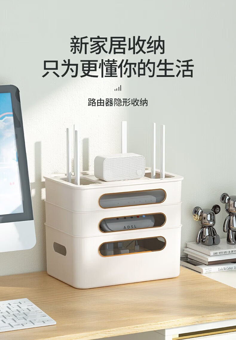 Haofanjie router storage box storage rack wifi living room home light cat hidden set-top box broadband network cable arrangement router storage box white three layers