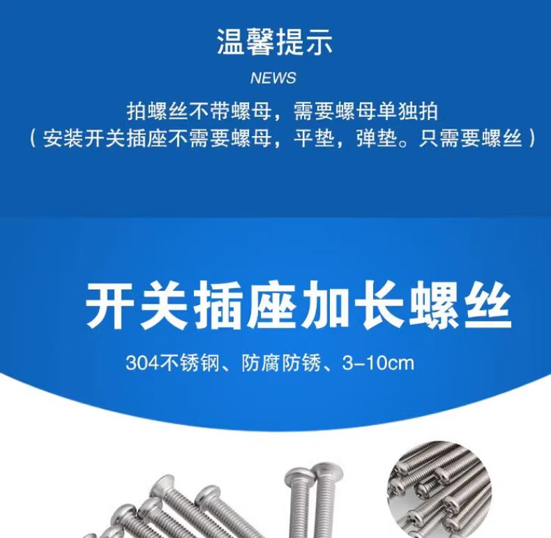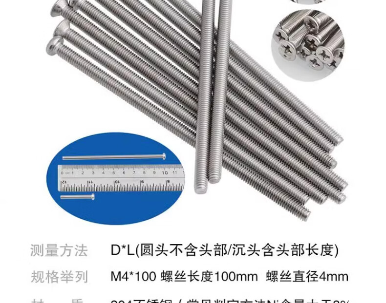 Tianzhuo Hardware 304 stainless steel countersunk head round head cross m4 screw extension 4-7CM electrician switch socket panel type 86 round head screw 4 cm 20 pieces