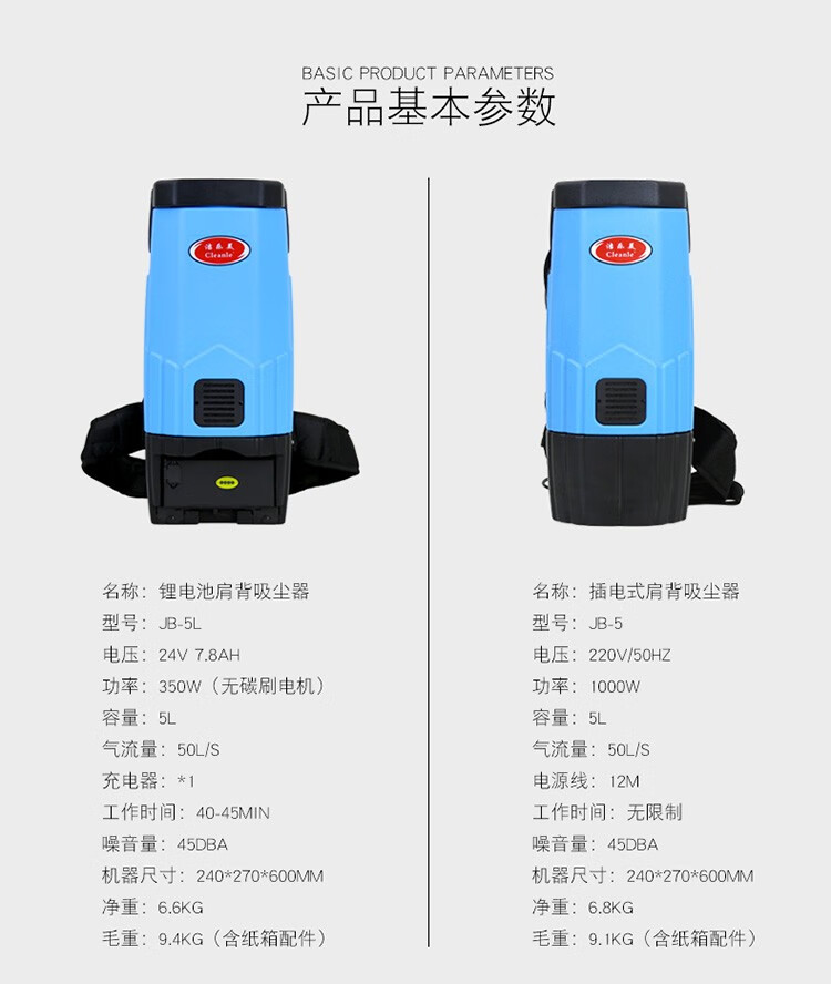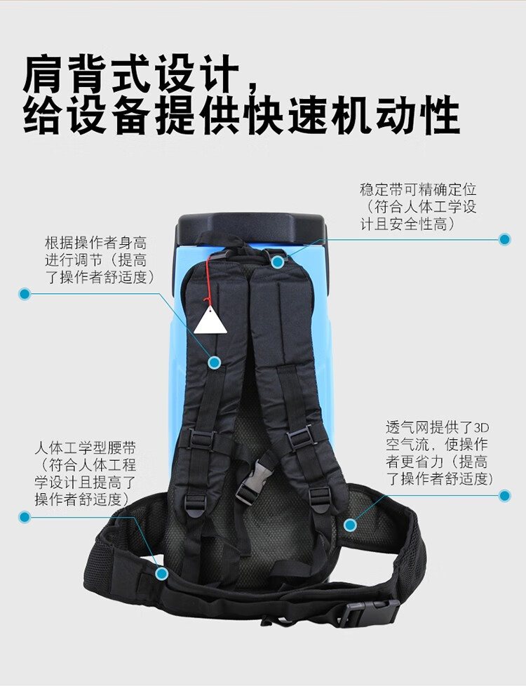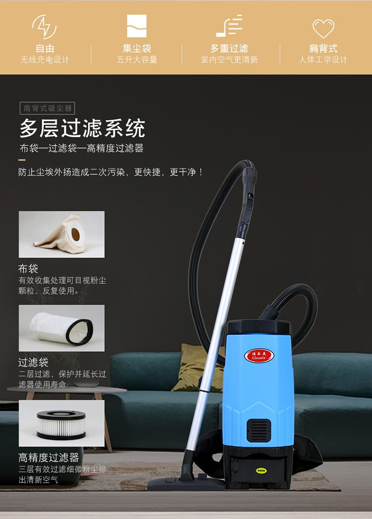 Cleanle Backpack Cordless Vacuum Cleaner Lithium Battery Dry Vacuum Cleaner Factory Warehouse Station Shoulder-Back Rechargeable Vacuum Cleaning Equipment JB12 220V Wire Model 1200W Includes 10M Wire