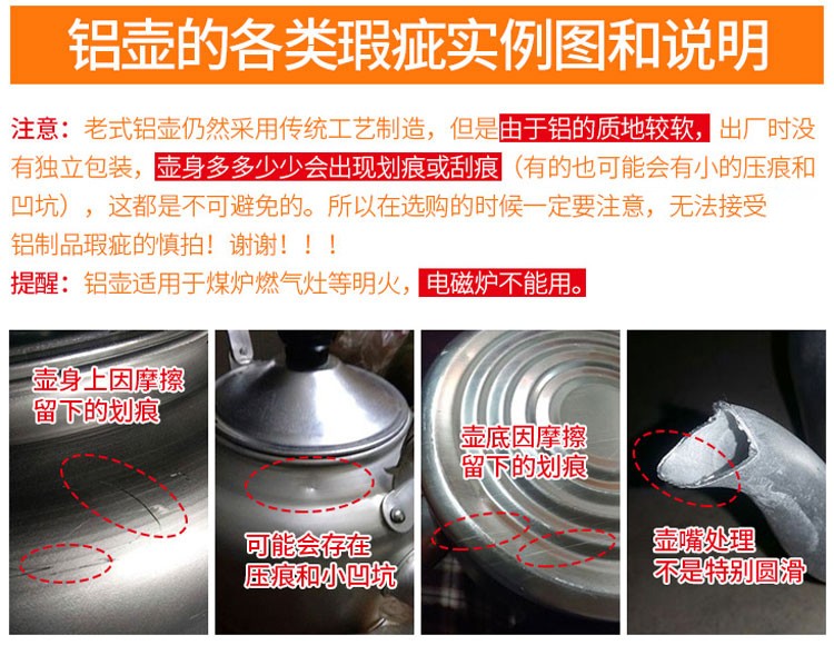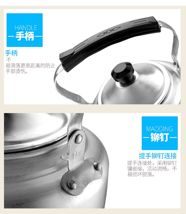 Old-fashioned extra thick traditional aluminum kettle aluminum kettle large capacity 10 liters household restaurant teapot gas stove (small family) extra extra thick aluminum kettle 20cm-3 liters 0ml