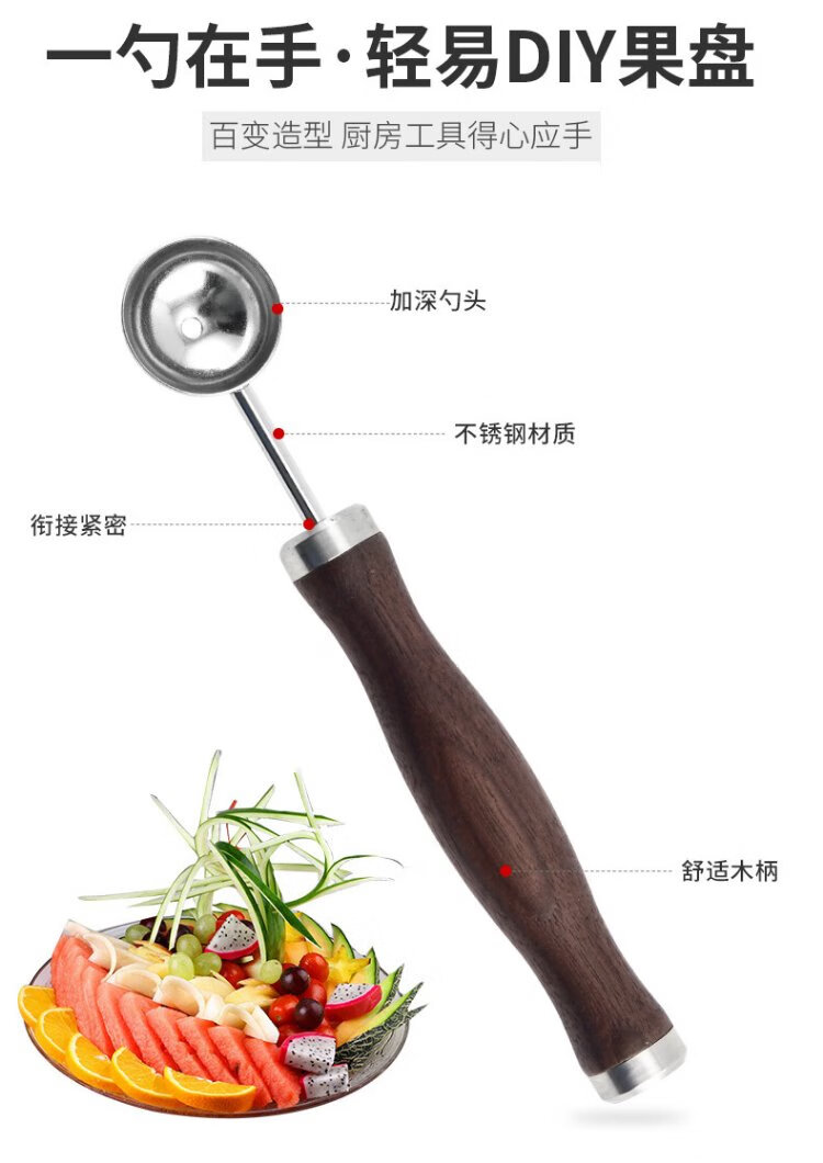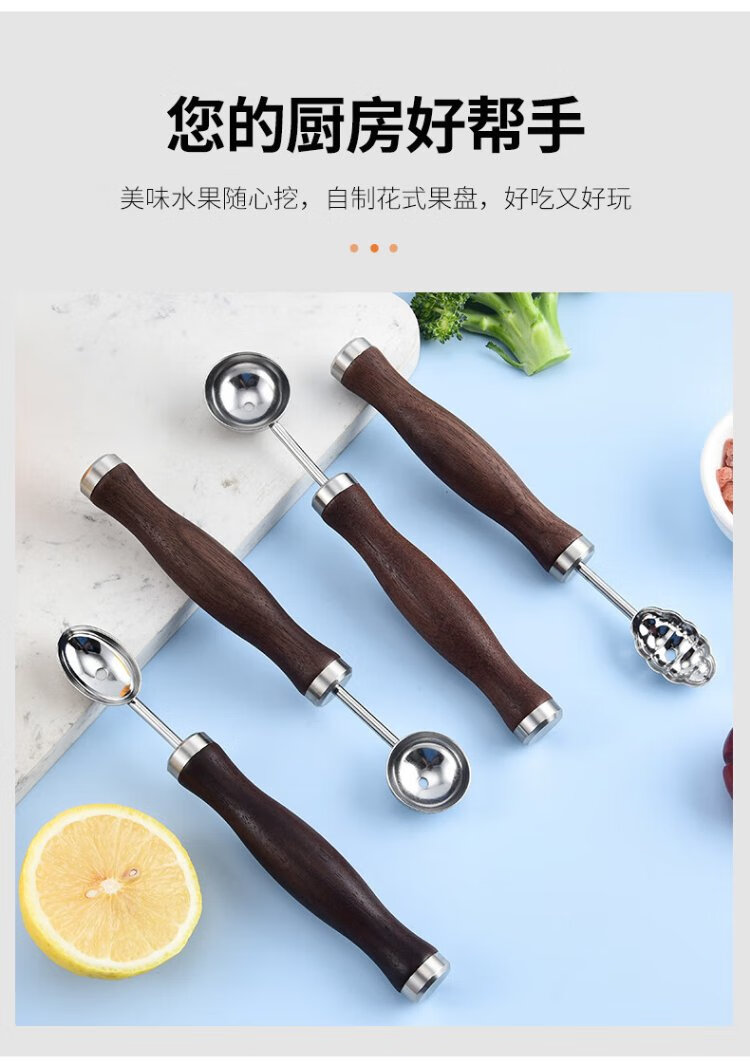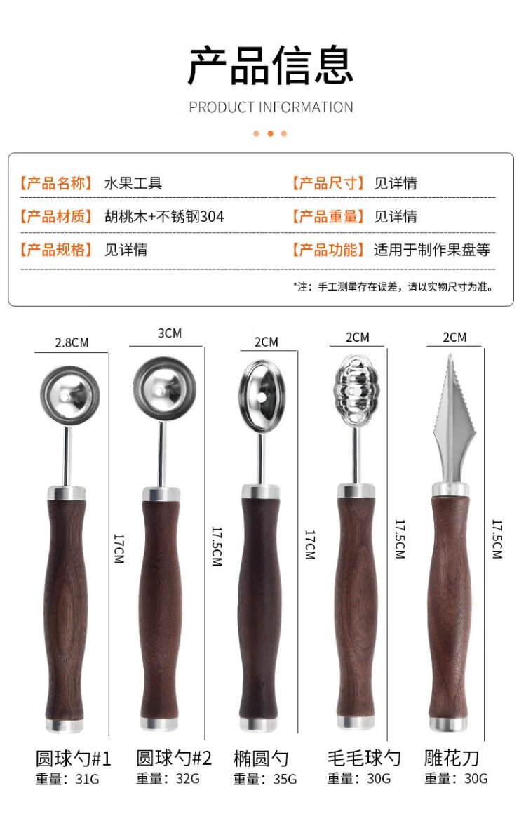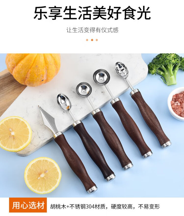 Durable 304 stainless steel fruit carving platter shape fruit plate tool complete set of fruit ball scooper watermelon cutting artifact 304 carving tool 5-piece set