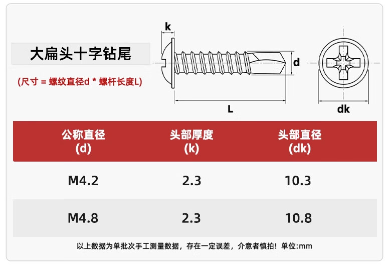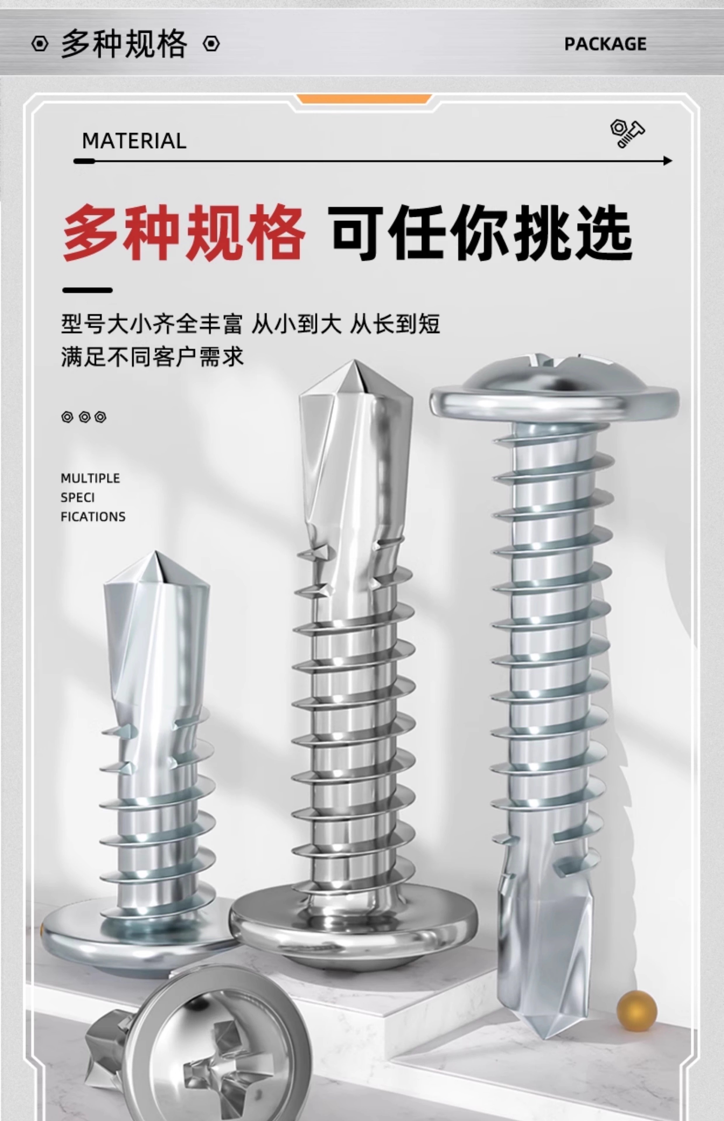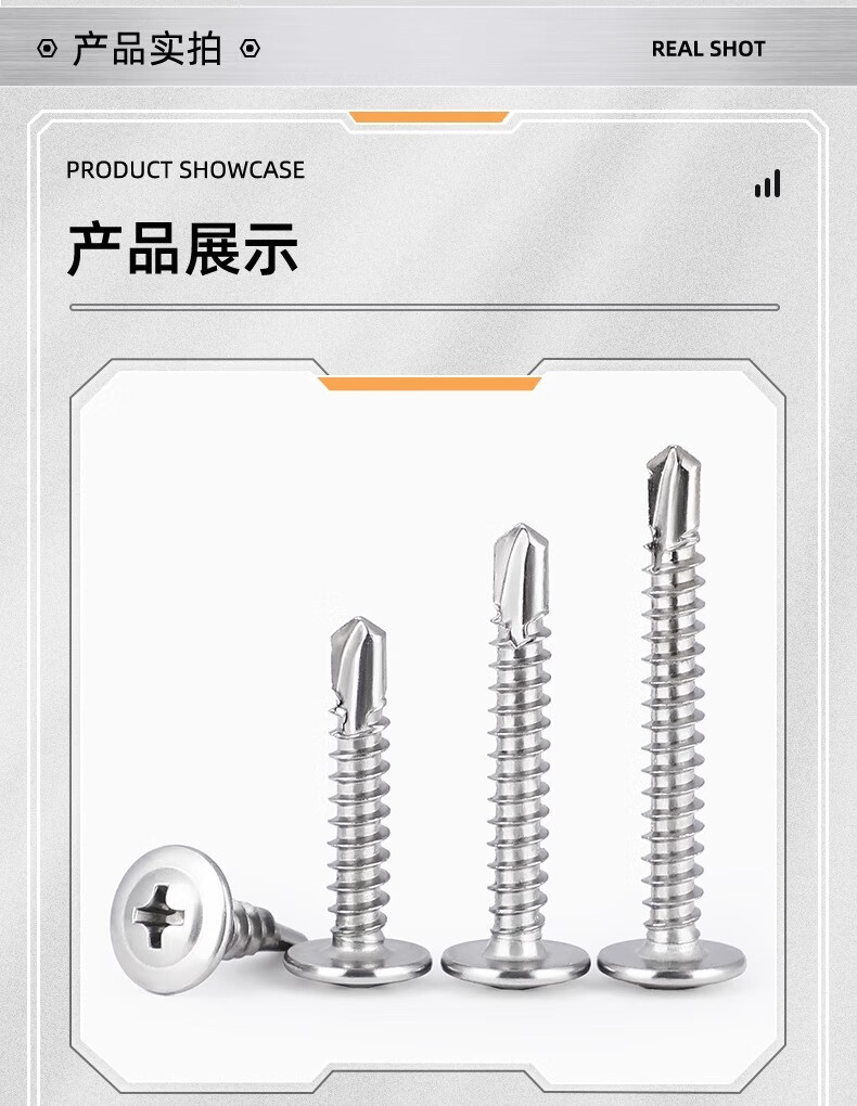 Tianzhuo Hardware 410/304 stainless steel cross round head padded drill tail screws galvanized large flat head self-tapping self-drilling dovetail screws 410 material 4.2*16 50 pieces