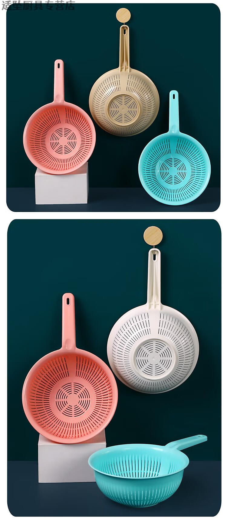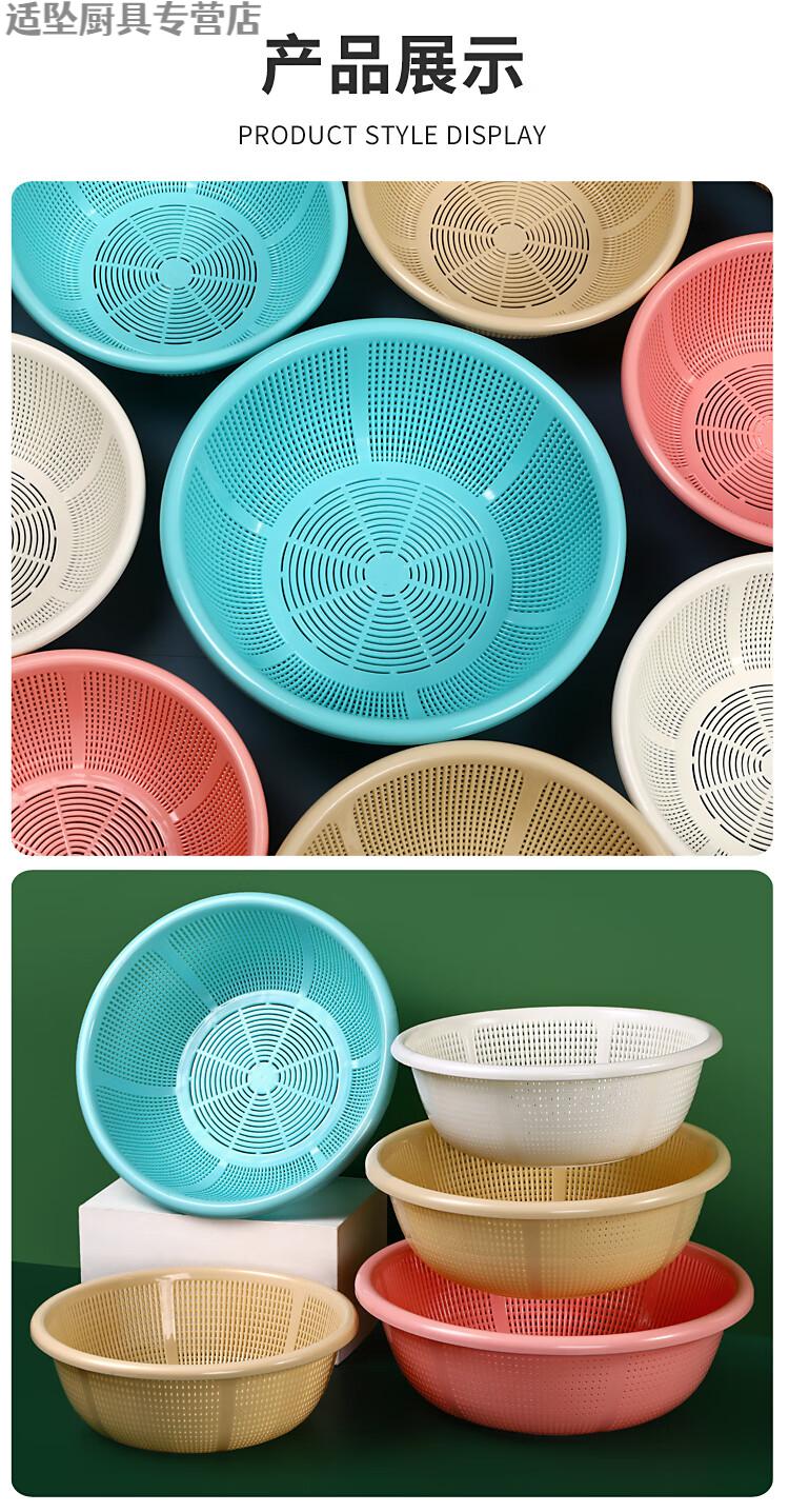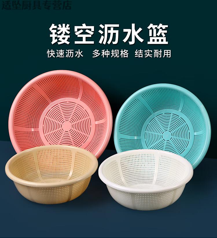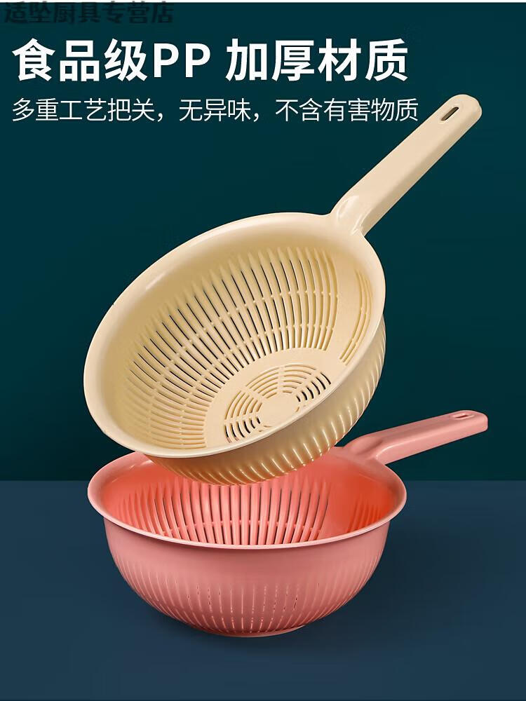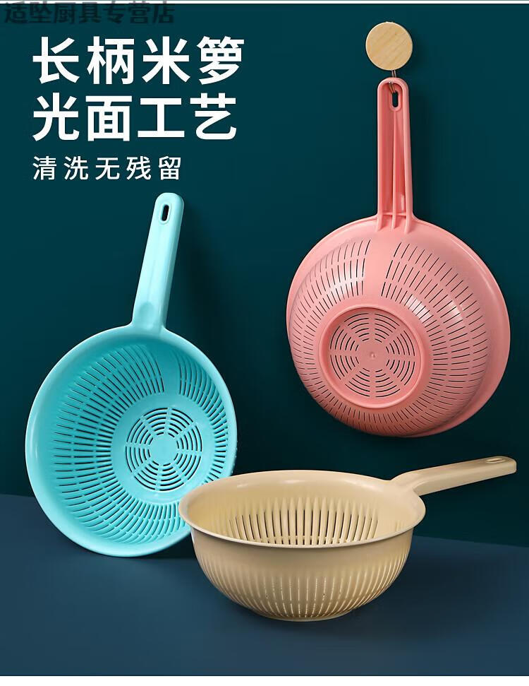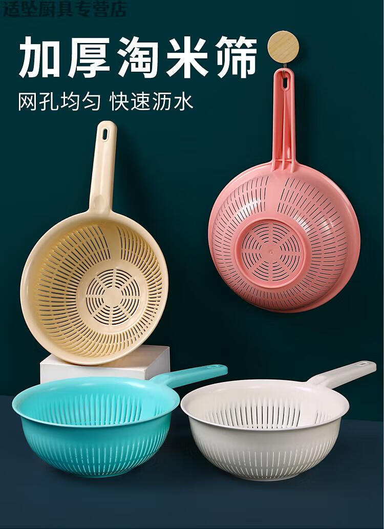 Tuojin Extra Thick Plastic Rice Basket with Handle Rice Basket Kitchen Long-Handed Rice Washer Sieve Dish Basin Drain Basket Long-Handed Model Extra-Thick Pearl White Upgraded Model 0ml