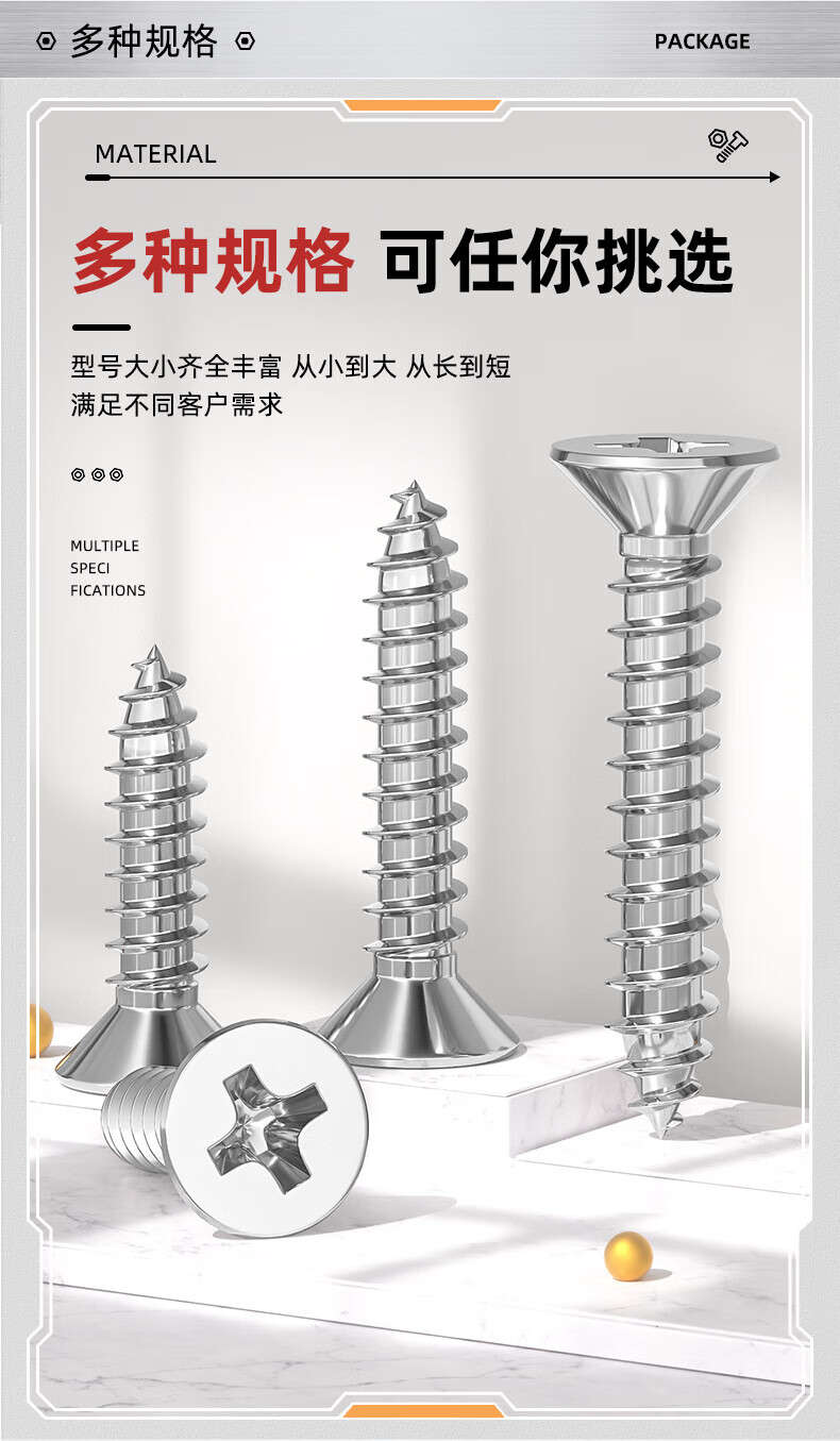 Tianzhuo Hardware 201 stainless steel countersunk head screws Cross flat head self-tapping wood screws M2.2M3.5M3.9M4.2ST4.8-6.3 M4.2*22-100 pieces