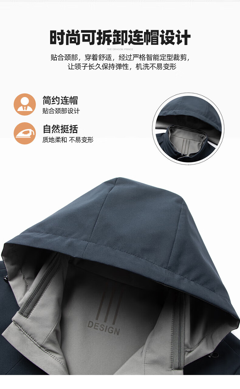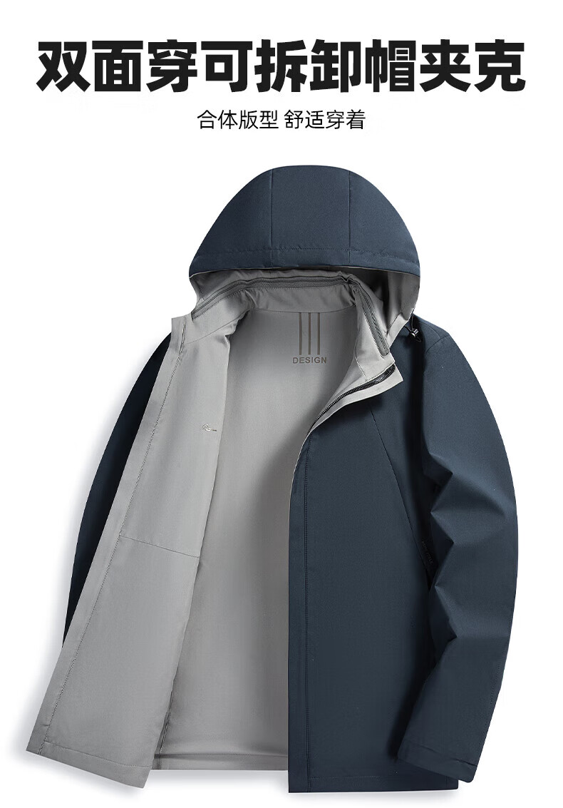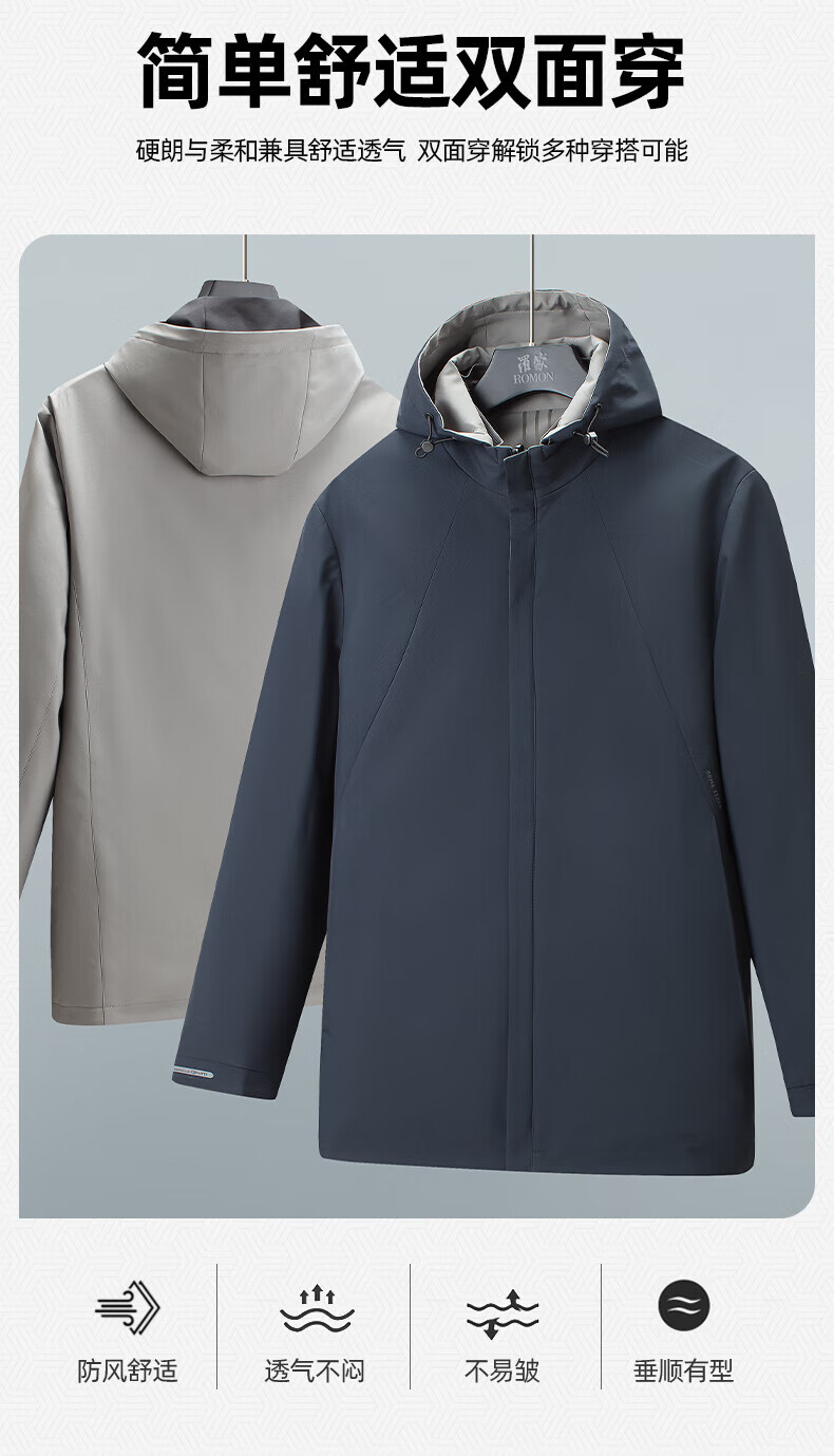 ROMON Reversible Milk Silk Jacket Men's 2025 Autumn New Removable Hood Business Casual Jacket Cyan 2XL 185 (160-175 catties recommended)