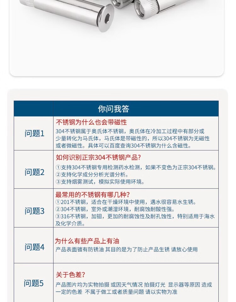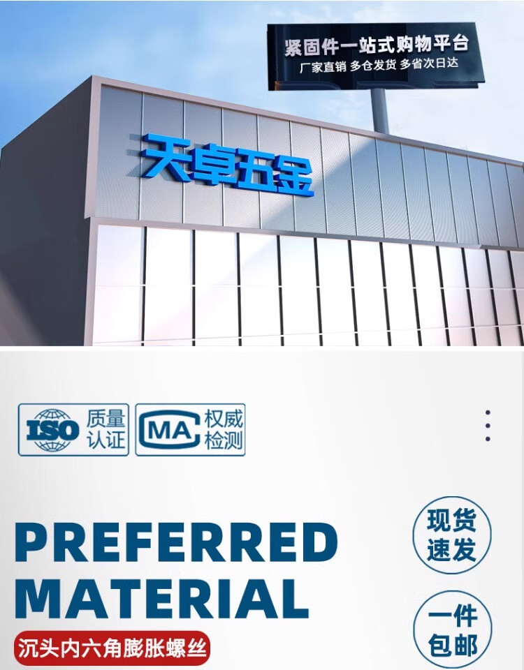 Tianzhuo Hardware 201/304 stainless steel countersunk head hexagonal expansion screw flat head built-in internal expansion bolt M6M8M10M12 304 national standard 6*60 2 pieces