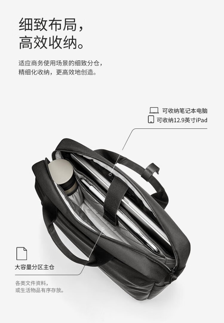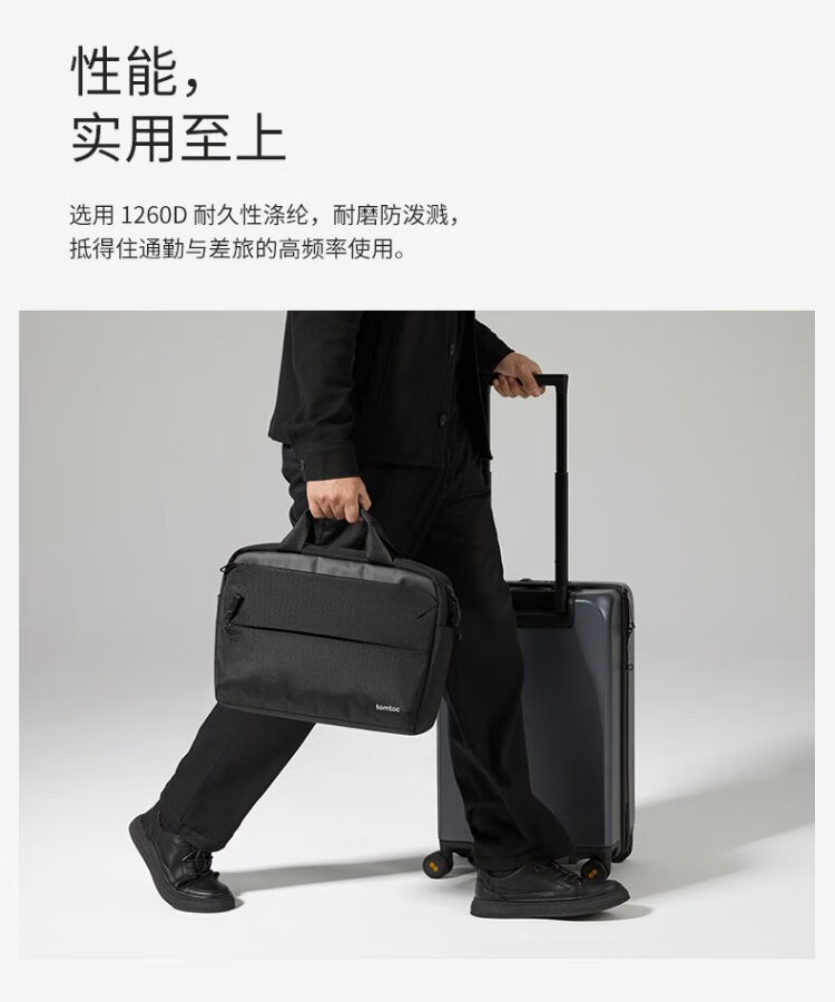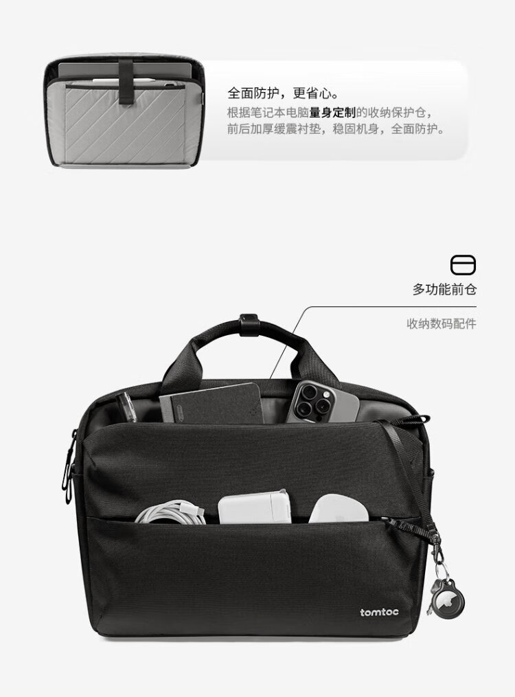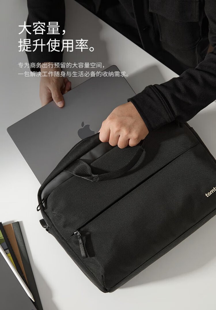 Tomtoc computer bag portable briefcase men's 14-inch business casual 15.6-inch large capacity laptop bag A32 classic black 14-inch
