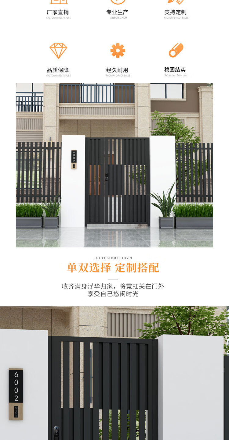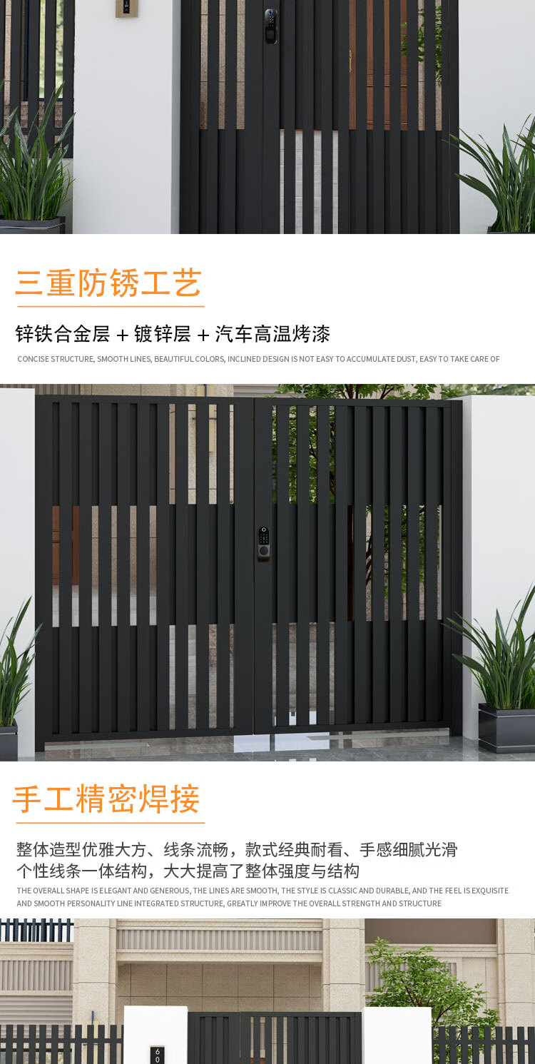 Jin Fushun customized stainless steel courtyard door in rural area villa entrance double door wrought iron shutter gate fence courtyard wall door main picture style double door regular/one level