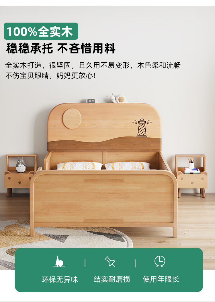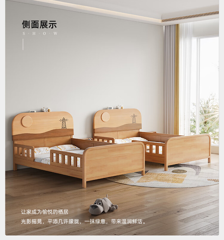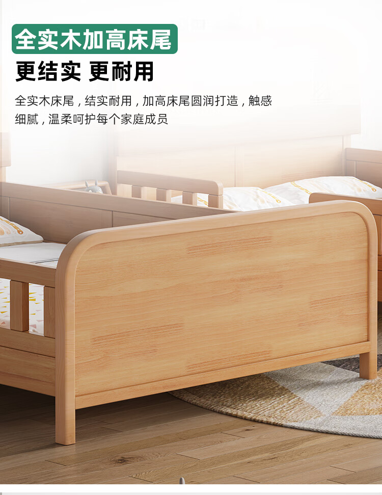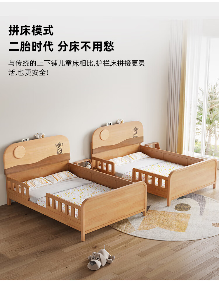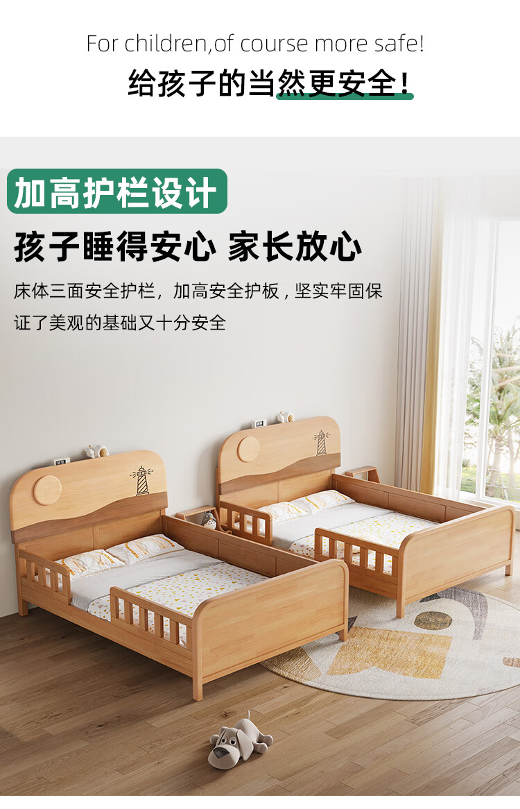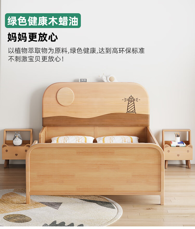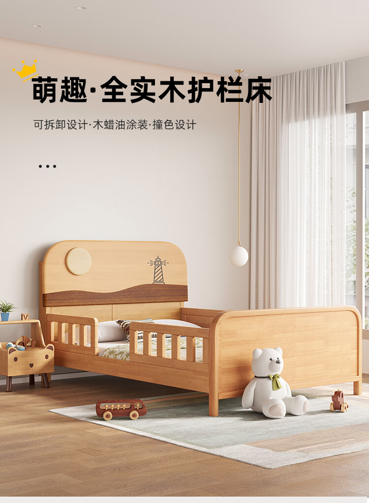 Door-to-door solid wood children's bed with guardrails solid wood children's bed with guardrails 1.2 meters for boys and girls solid wood color 1.5 meters 1.35 all solid wood double side guardrail bed + 10cm soft and hard 1200*2000