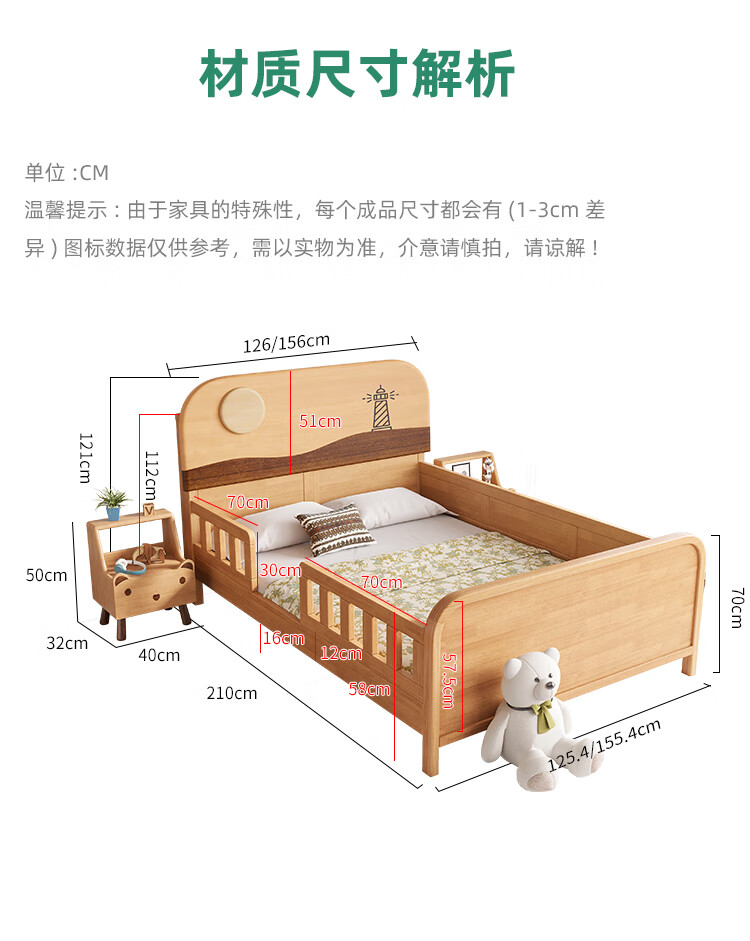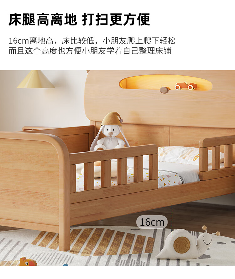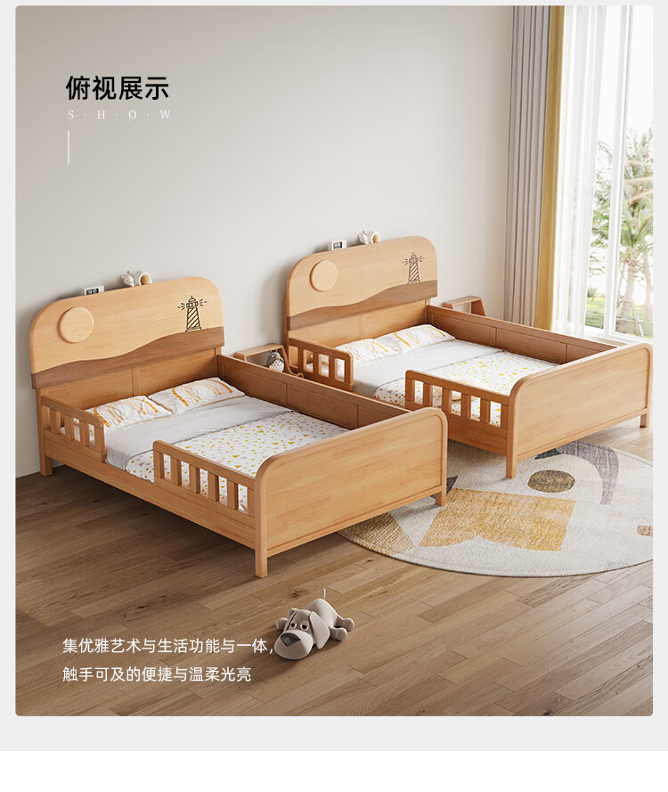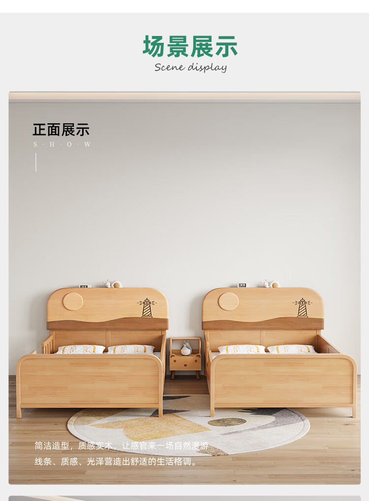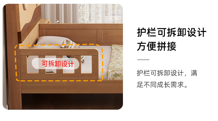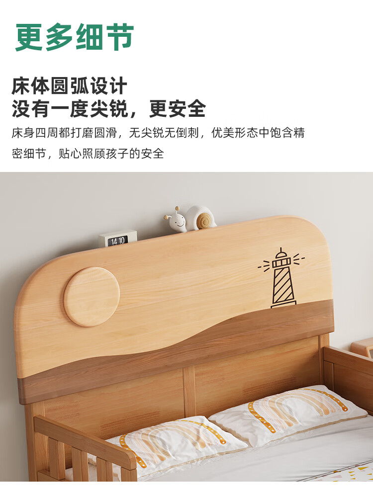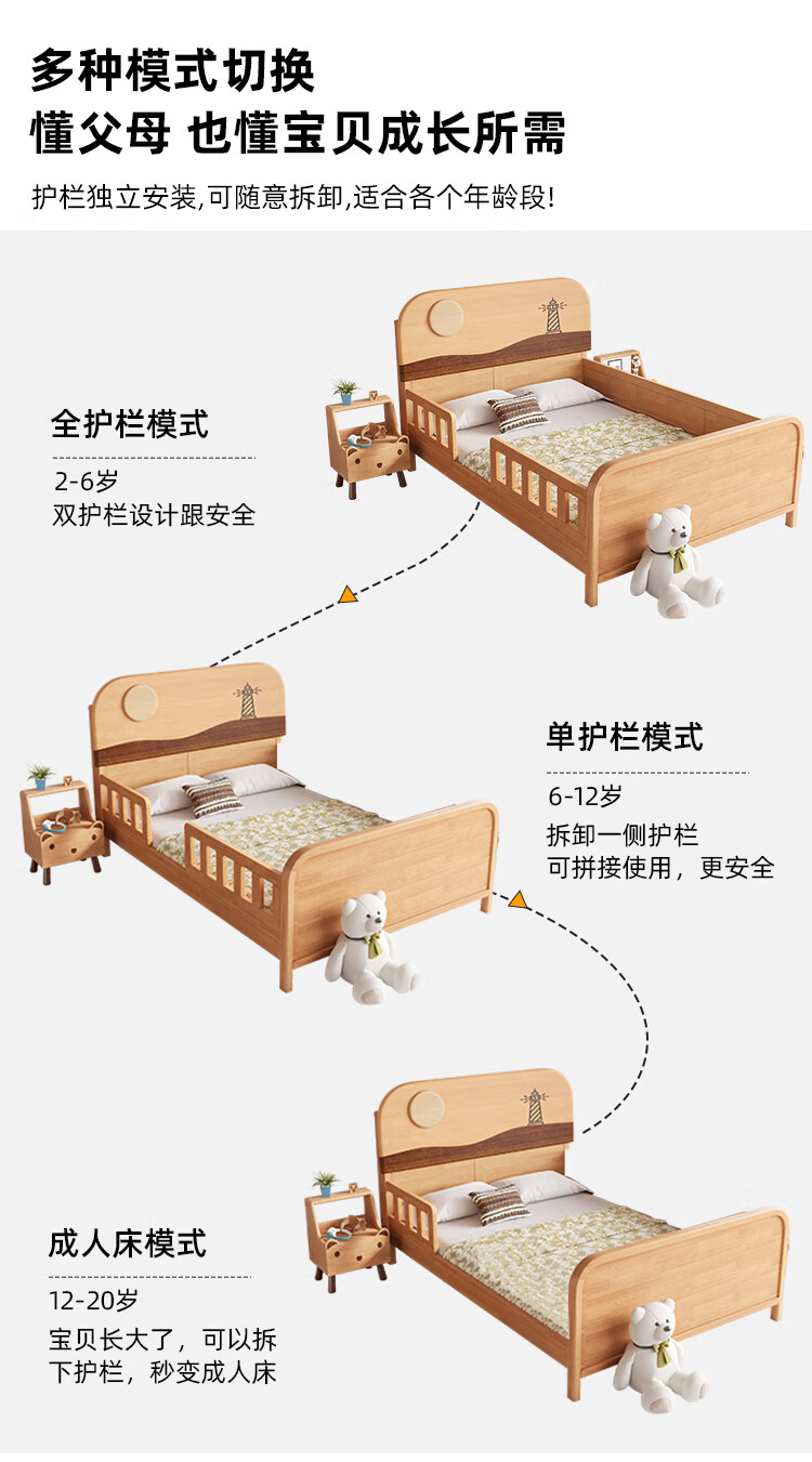 Door-to-door solid wood children's bed with guardrails solid wood children's bed with guardrails 1.2 meters for boys and girls solid wood color 1.5 meters 1.35 all solid wood double side guardrail bed + 10cm soft and hard 1200*2000