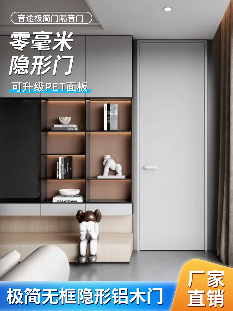 Modern simple aluminum-wood door frameless door hidden frame door invisible door hidden door solid wood composite interior door bedroom set door upgraded invisible hinge