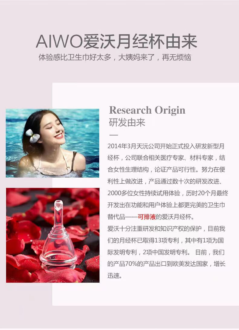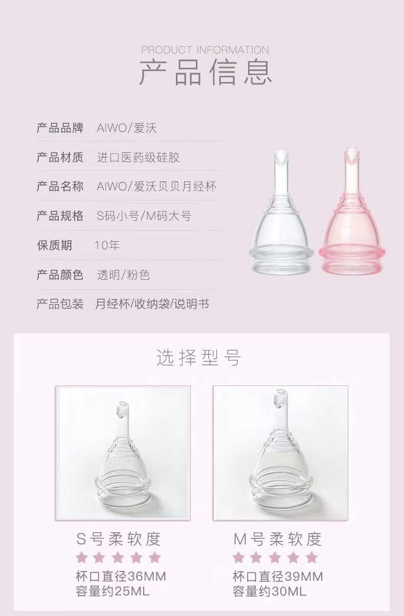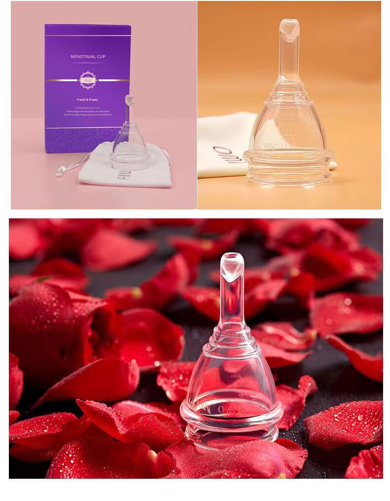 Aiwo Menstrual Cup Transparent Silicone Drainable Menstrual Cup Menstrual Cup Auntie's Magical Menstrual Anti-Leakage Tampon Second Generation New Drainable Powder + Gift Pack M Size