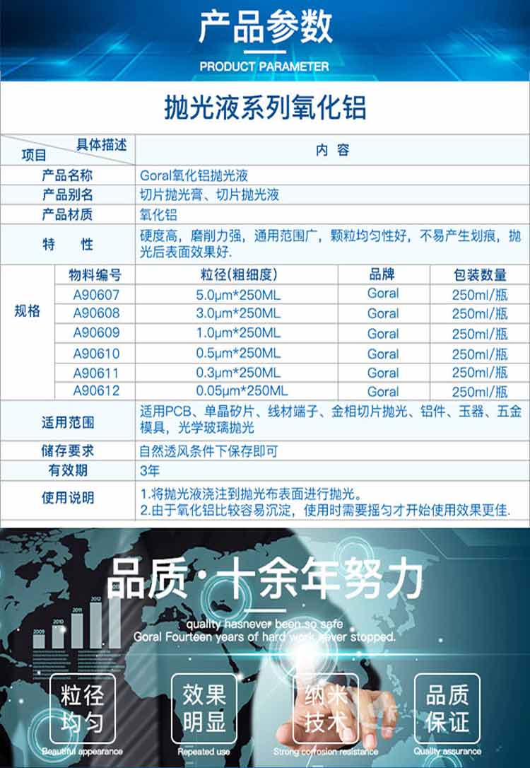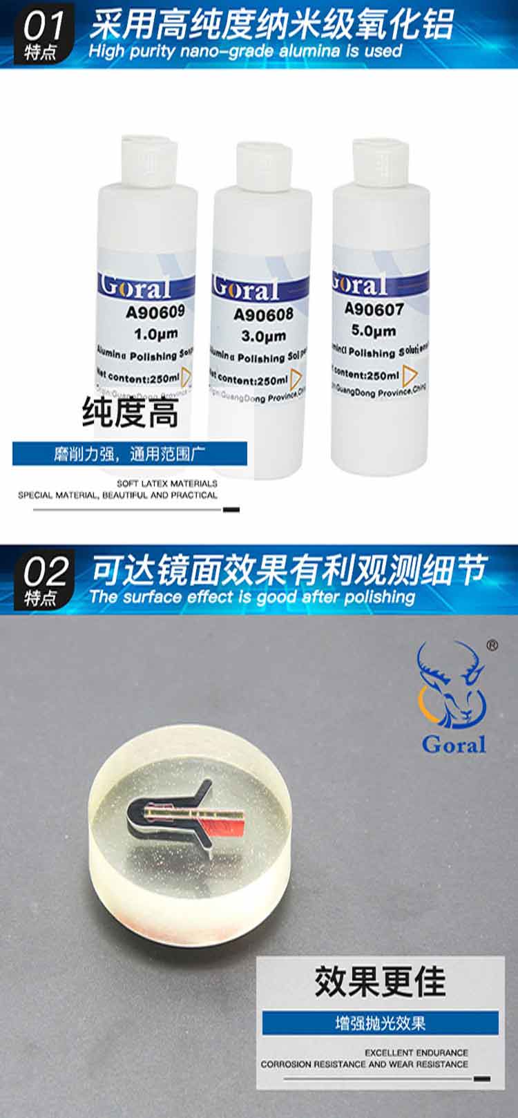 Metallographic alumina suspension polishing paste nano-scale mirror OPA polishing liquid W0.050.31.2um W0.3um 250ml