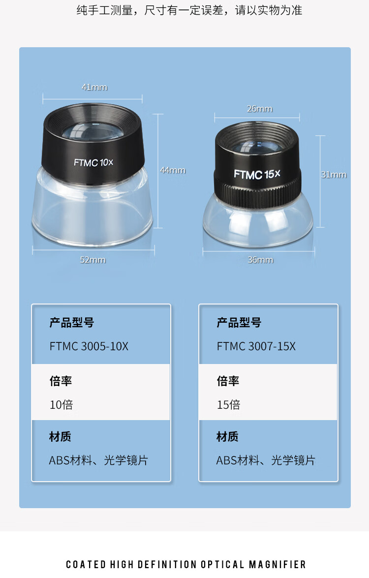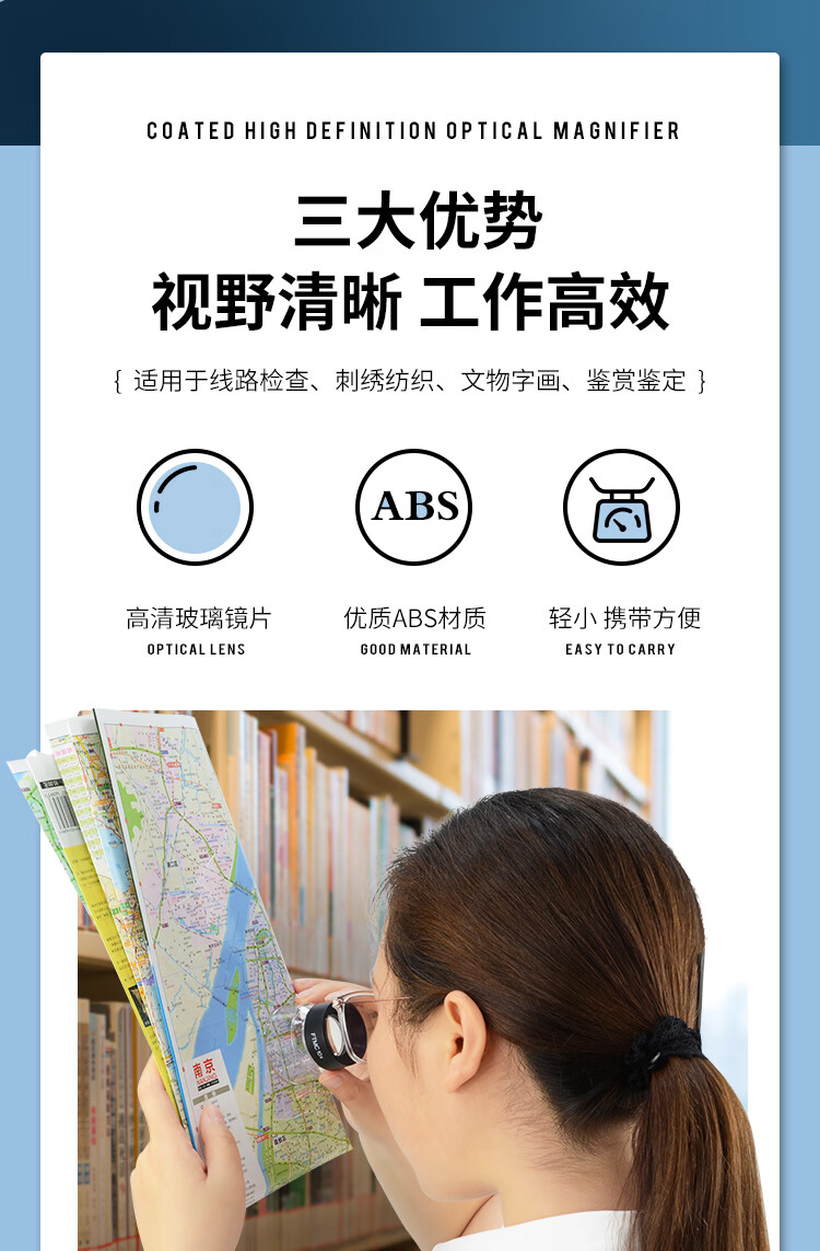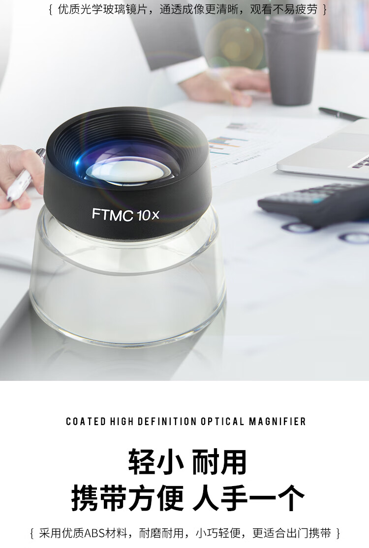 10x magnifying glass portable high-definition cylindrical small bowl magnifying glass inspection plate mirror print 3005-10X 1005-10X standard 10x with scale