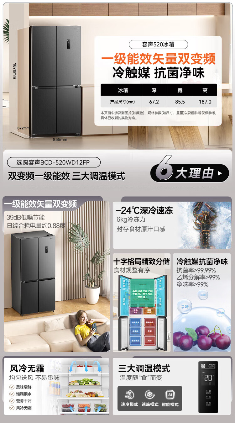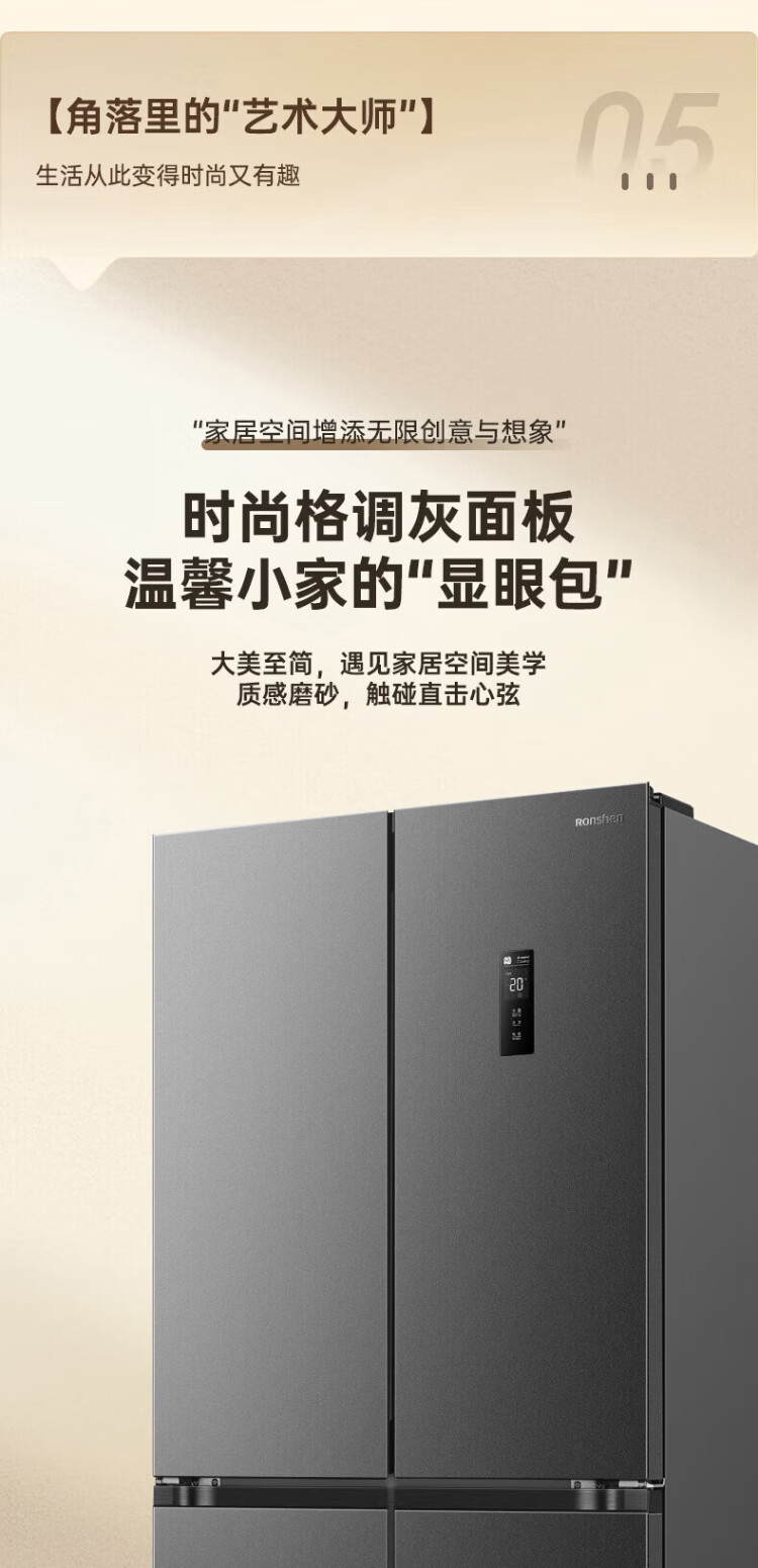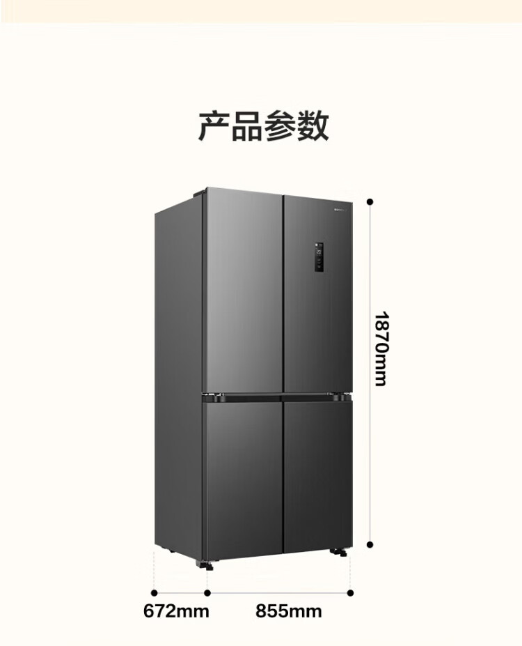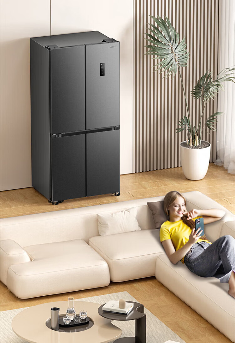 Rongsheng 520 liter large-capacity cross double-fold four-door refrigerator household ultra-thin first-class energy-saving air-cooled frost-free frequency conversion BCD-520WD12FP gray state subsidy first-class energy efficiency double frequency conversion large-capacity refrigerator