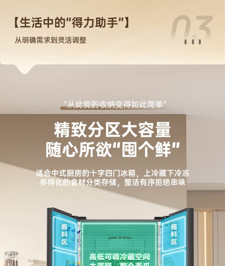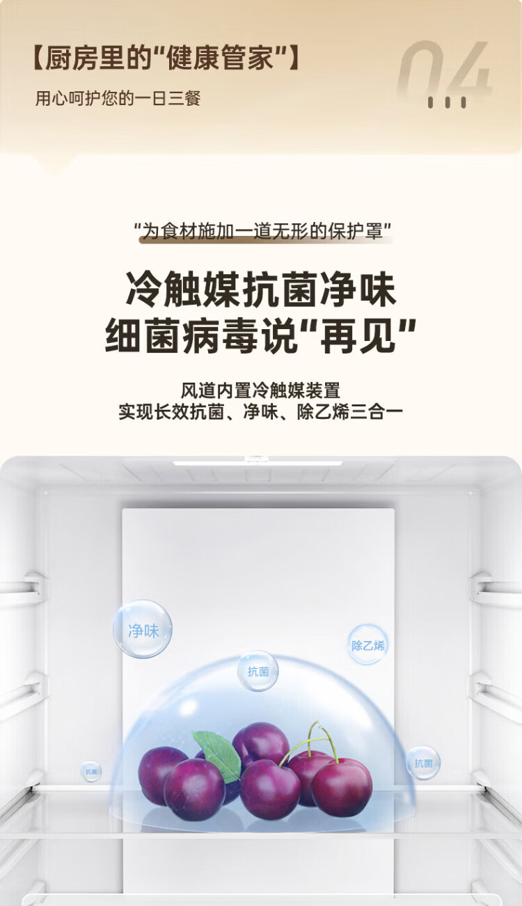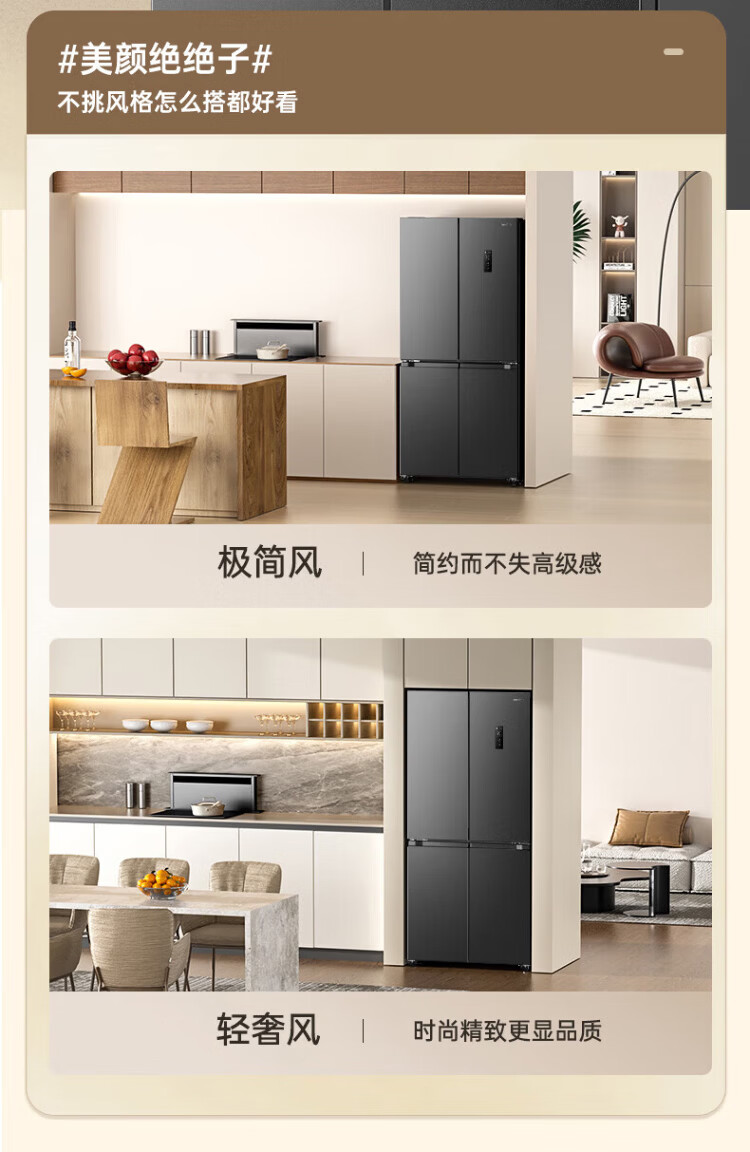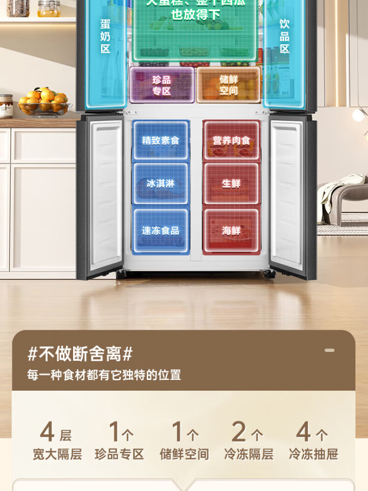 Rongsheng 520 liter large-capacity cross double-fold four-door refrigerator household ultra-thin first-class energy-saving air-cooled frost-free frequency conversion BCD-520WD12FP gray state subsidy first-class energy efficiency double frequency conversion large-capacity refrigerator